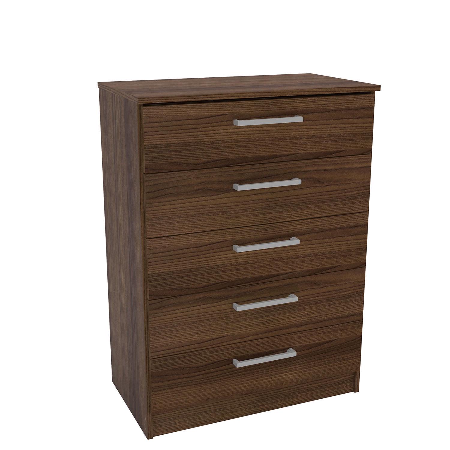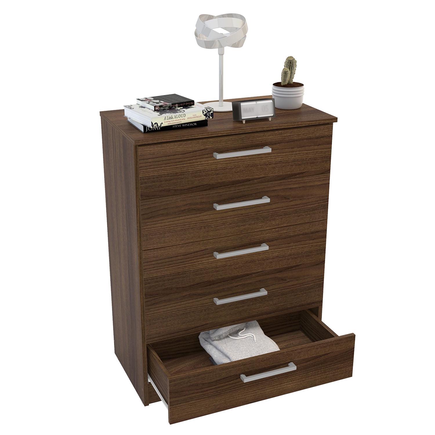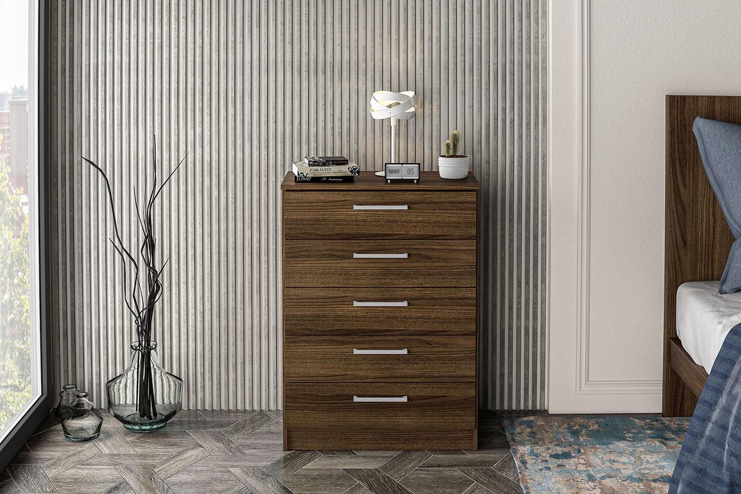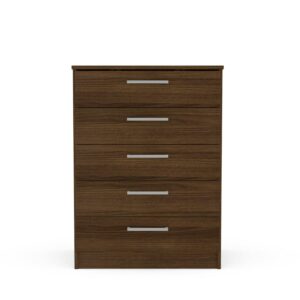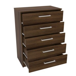 Polifurniture Juliette Modern 5 Drawer Tall Dresser, Dark Brown Finish