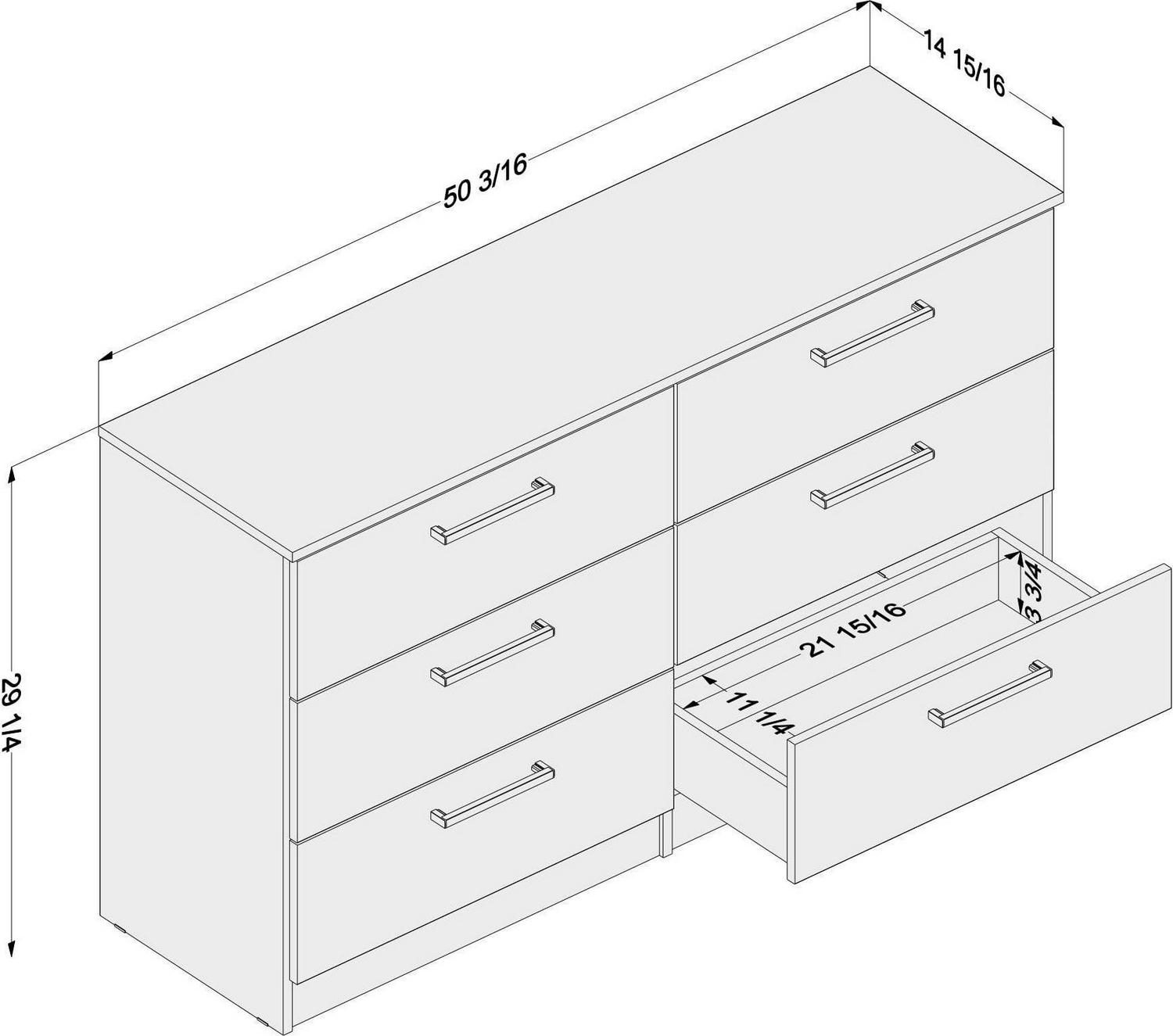– Assembled dimensions: 50.2 in W x 14.92 in D x 29.25 in H