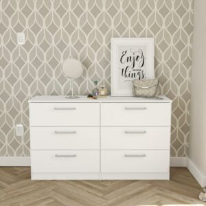 Polifurniture Juliette Modern 6 Drawer Double Dresser, White Finish