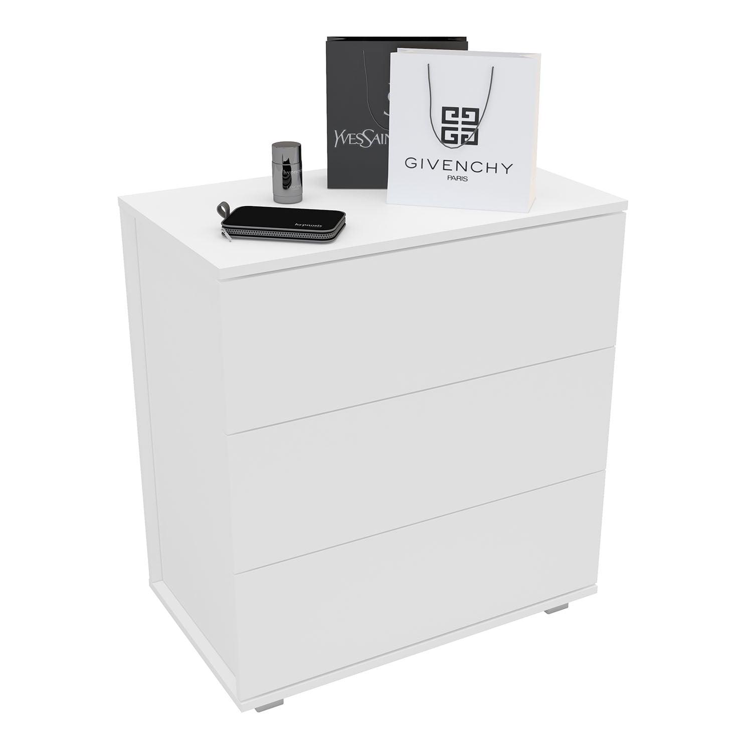 Polifurniture Madison Modern 3 Drawer Dresser, White