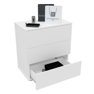 Add storage and style to your bedroom with the Madison 3 Drawer Chest from Polifurniture. This modern chest will fit with a variety of decors and is available in multiple color finishes. It has 3 spacious drawers to keep all your personal belonging neat and organized. Constructed from engineered wood with a resistant melamine finish this chest was designed to last. Pair with any of the items in Polifurniture’s Madison Collection for a complete bedroom set.