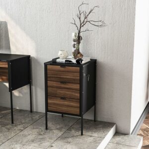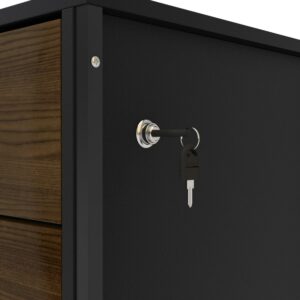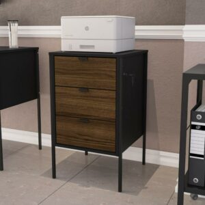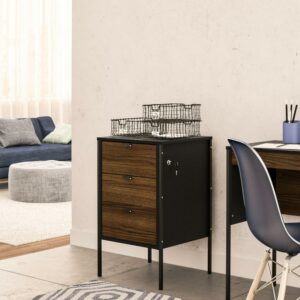 The Mallorca 3 Drawer Cabinet from Polifurniture is a stylish solution to your storage needs. This cabinet has a black finish with brown drawers and black metal legs. It includes 3 storage drawers with metal handles. Drawer lock included to keep all your items safe and secure. Add the Mallorca Desk and Mallorca Bookshelf for a complete home office look.
