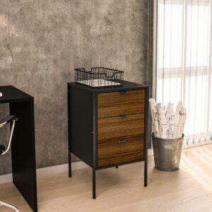 Polifurniture Mallorca 3 Drawer Office Cabinet in Black and Brown Finish