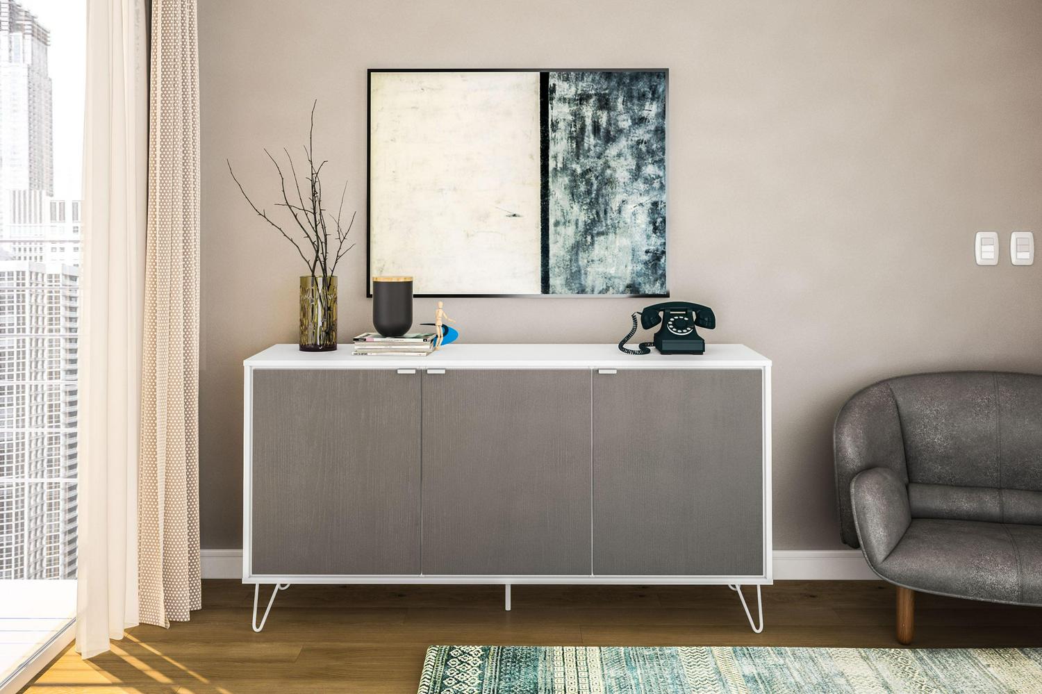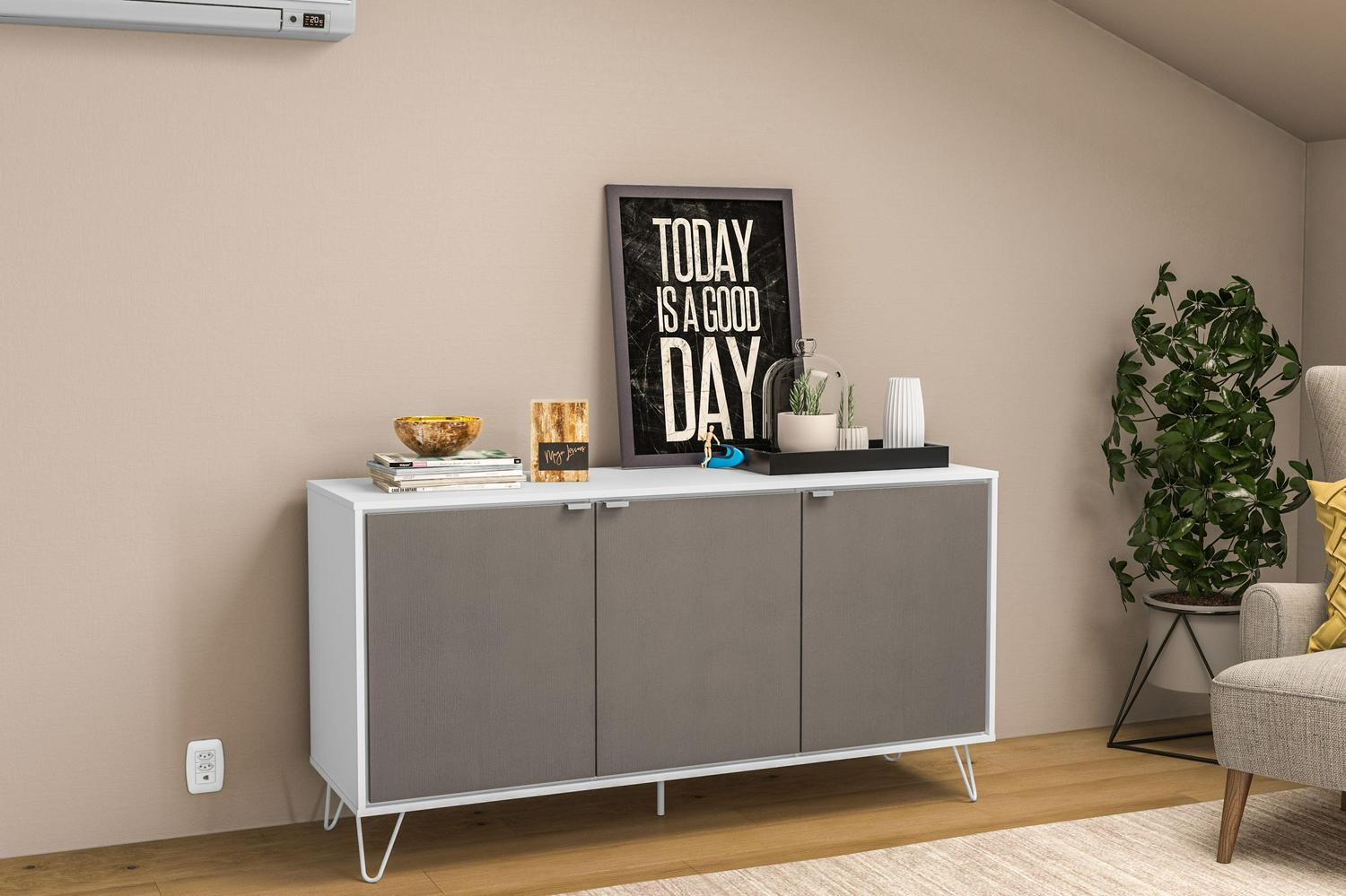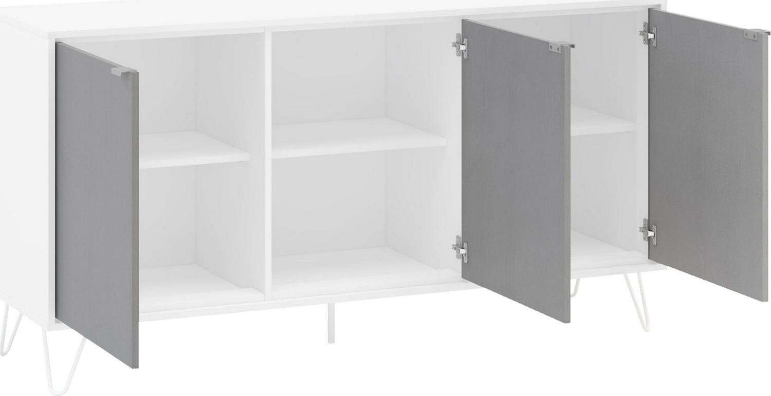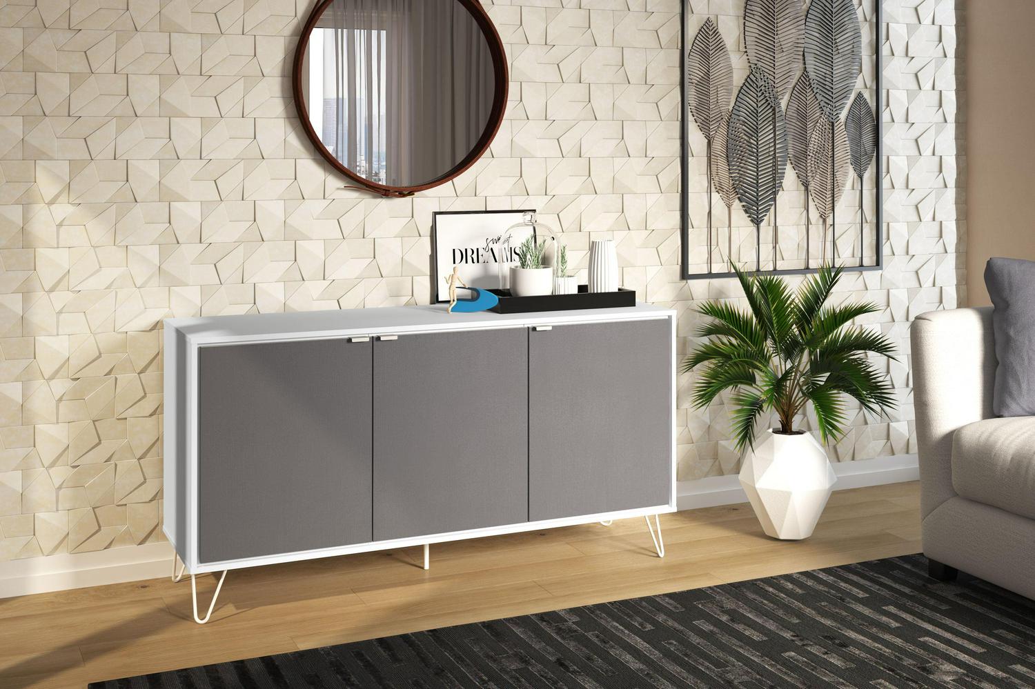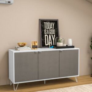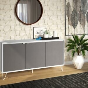 Polifurniture Oakland 39 in. Sideboard with 3 Doors, Grey and White Finish