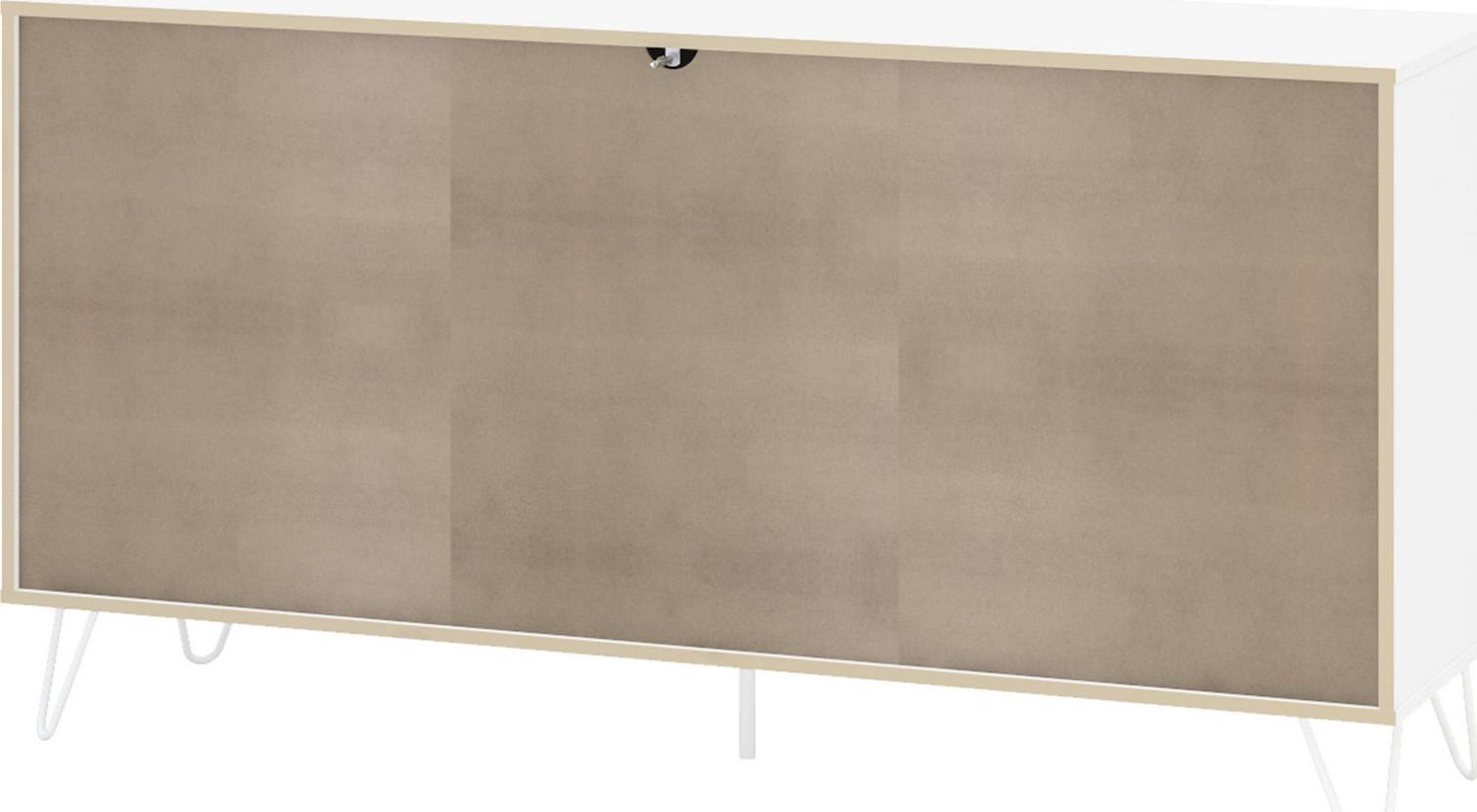 The Oakland 39 in. Sideboard from Polifurniture is the perfect addition to any room with its modern design and ample storage capacity. It is constructed from engineered wood with a durable melamine finish to protect against everyday use. The white and grey finish will compliment most many modern décor styles. This sideboard has 3 spacious cabinets that provide plenty of concealed storage to keep your home looking neat and organized. It also includes 2 adjustable shelves allowing you to customized your space based on your storage needs.