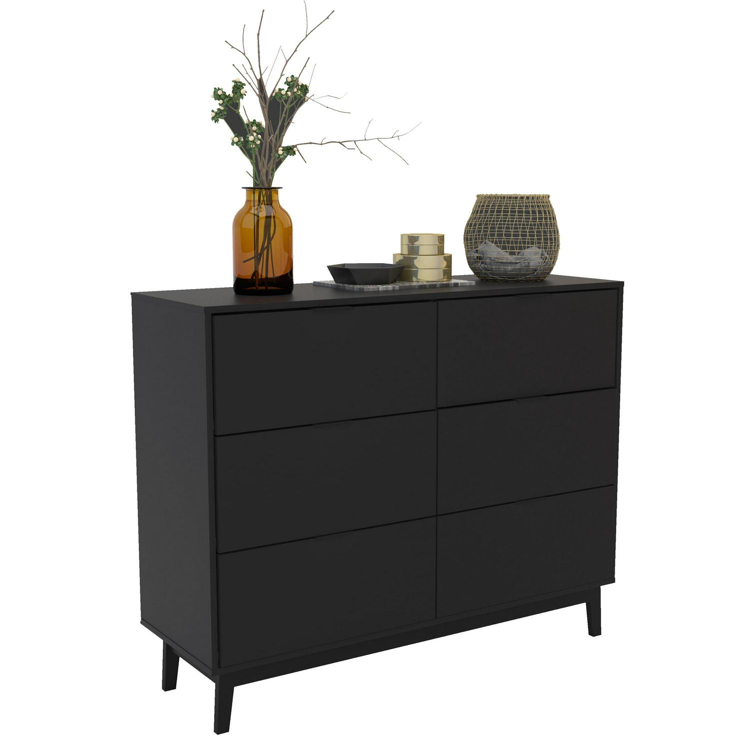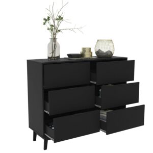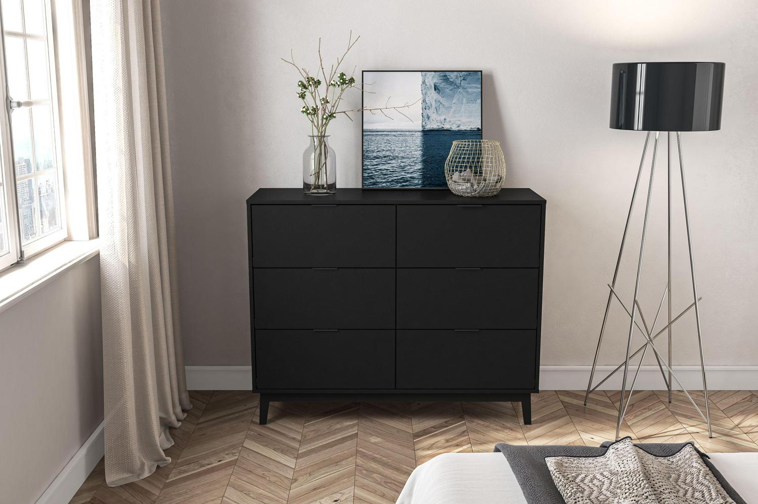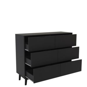 Polifurniture Victoria Modern 6 Drawer Double Dresser, Black