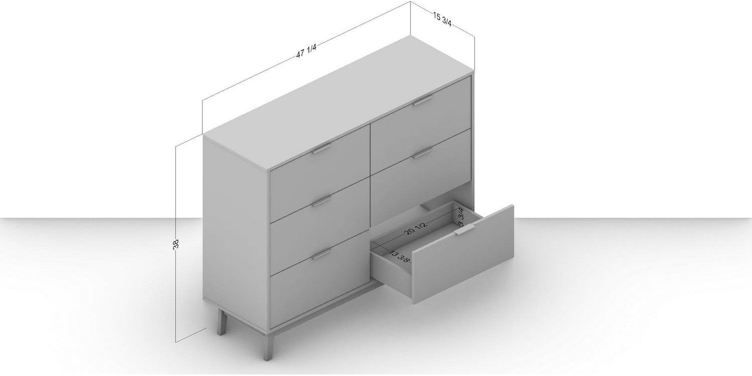 The simple and classic design of the Victoria 6 Drawer Double Dresser from Polifurniture is perfect for any modern bedroom. The 6 drawers provide plenty of storage space to keep your belongings organized. Constructed from engineered wood with a durable melamine finish to protect against every day use and available in multiple color options. Give your bedroom space a modern flair while solving all of your bedroom organizational needs. Pair with any of the items in Polifurniture’s Victoria Collection for a complete bedroom set. Available in multiple finishes. Assembly required; instructions provided. Assembled dimensions: 47.25 in W x 15.75 in D x 38 in H
