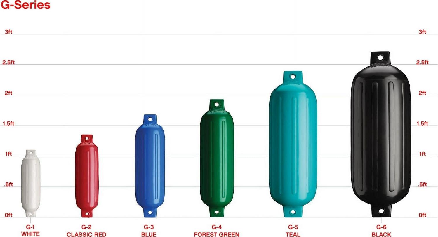 – G-6 fenders are recommended for boats between 30 and 40 ft. in length
