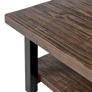 Pomona Square Coffee Table is the perfect size for your living room or family room. The bottom shelf offers additional space for storage or knick-knacks. This product is made with a mix of new and reclaimed wood; due to the nature of reclaimed wood no piece is exactly alike; variations such as cracks, knots, etc. add to the piece’s character.