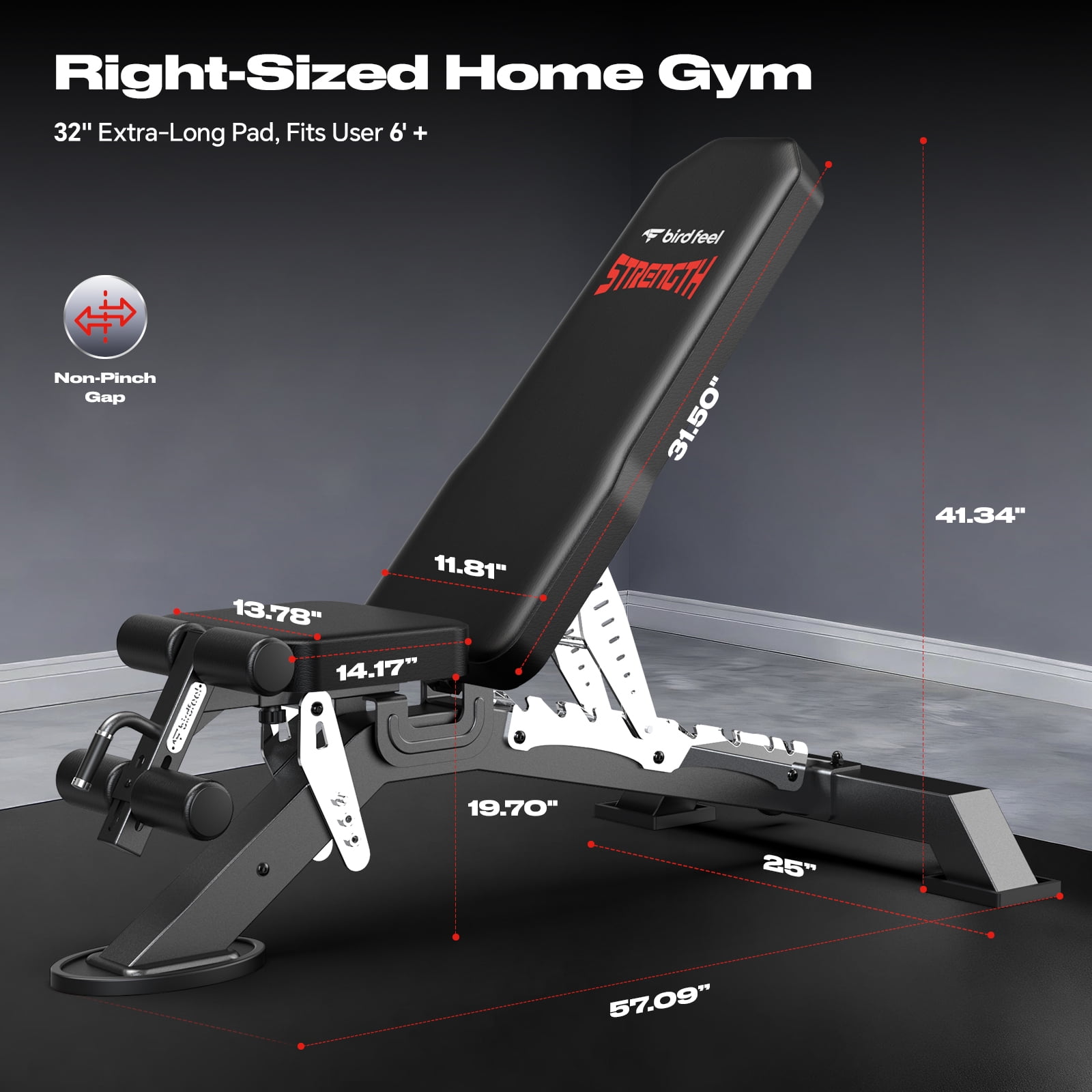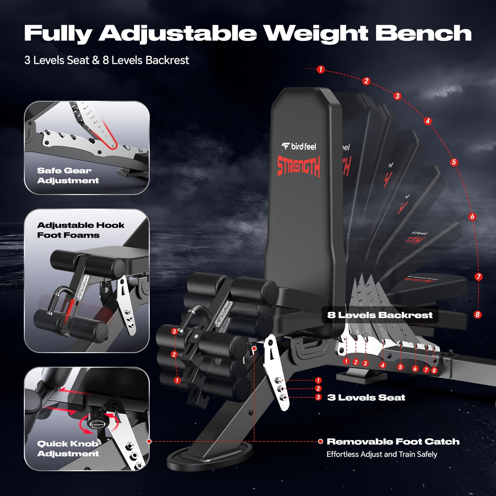 Birdfeel Commercial Adjustable Weight Bench MAX 1800LBS Heavy Duty Workout Bench for Home Gym Strength Training Removable Foot Catch for Incline Flat Decline Sit Up Bench