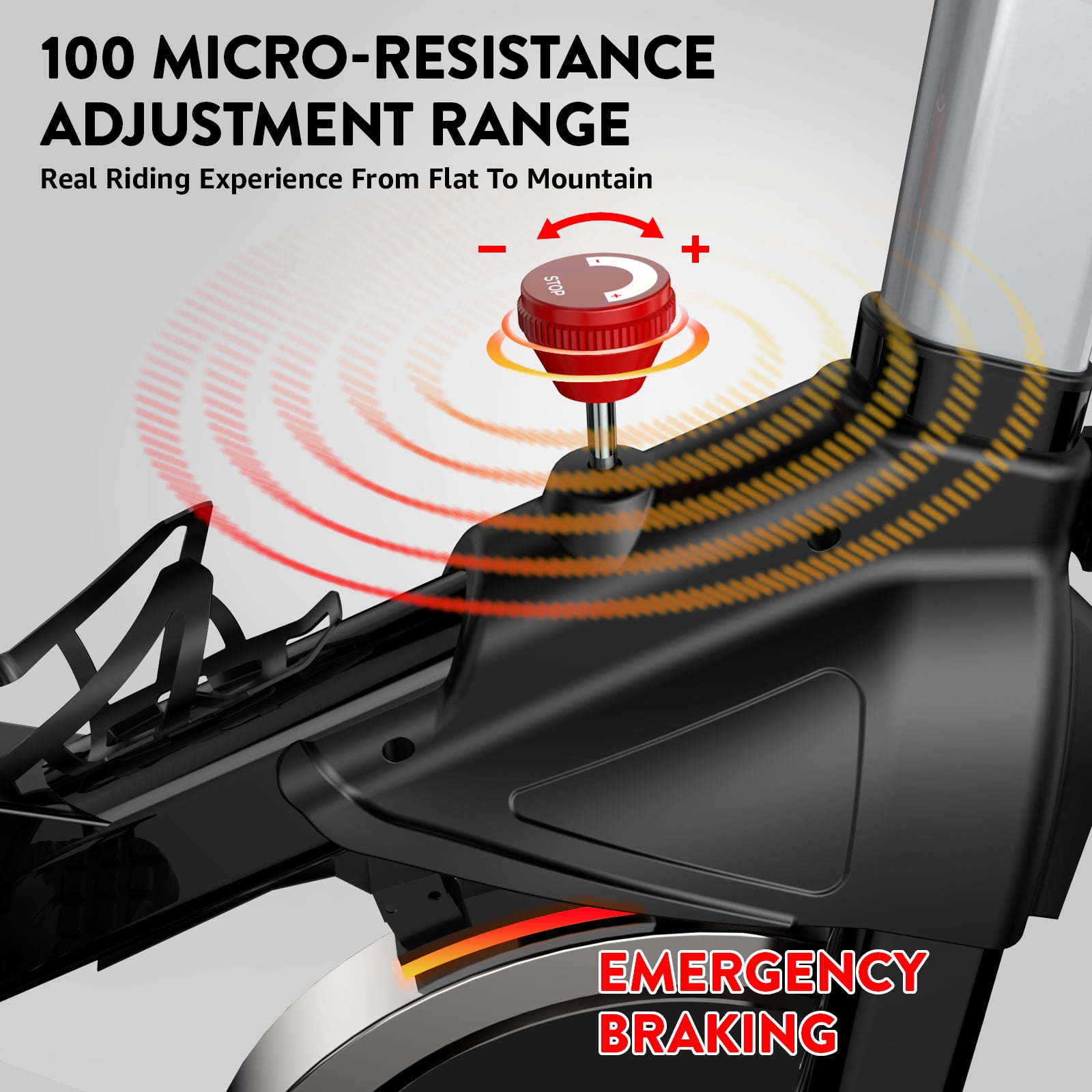 POOBOO Silent Magnetic Resistance Indoor Cycling Bike Exercise Bike Build-in Bluetooth Stationary Bike Heavy-duty Flywheel for Home Gym Exercise