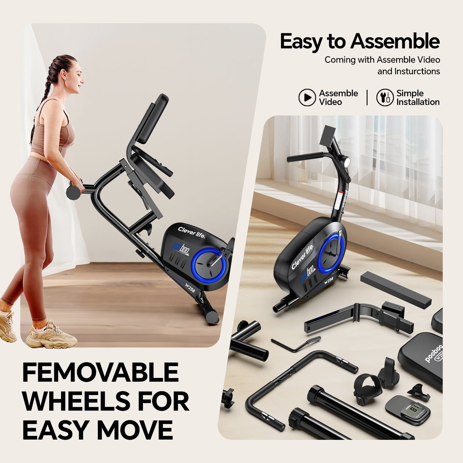 If you need ASSEMBLE VIDEO pls contact us from email! We have FREE BLUETOOTH APP, if you need pls contact us from email! Product Description About pooboo Brand Since 2005, pooboo has always insisted on strict quality control, userâs experience and needs, and has helped numerous users to achieve their fitness goals. Our products are well-received among exercisers, not only because of the innovative,aesthetic, reliable appearance, but also lies in high performance, easy operation, durability and comfortability. We are devoted to helping you work out more efficiently and smartly. pooboo Magnetic Recumbent Exercise Bike with Ipad Holder, Easy Adjustable Large Ergonomic Seat and Monitor This indoor cycling bike boasts high quality heavy-duty steel frame with wide ergonomic seat, offering you a convenient way to burn calories and keep fit with your body fully stretched. The sturdy construction provides superior durability and can support up to 380LBS. With mute magnetic control system, you will never worry to disturb anyone. You can choose from 8 levels of resistance to experience riding on various terrains. The adjustable wide seat and foot straps help to find optimal position to exercise. Products Weight: 70LBS Packing Weight: 66LBS Product Size:54*24*39 in Packing Size:37*14*21 in Max Weight:380LBS (However, to ensure long-term usage, a lower weight limit is stated in the manual 220.5 lbs)