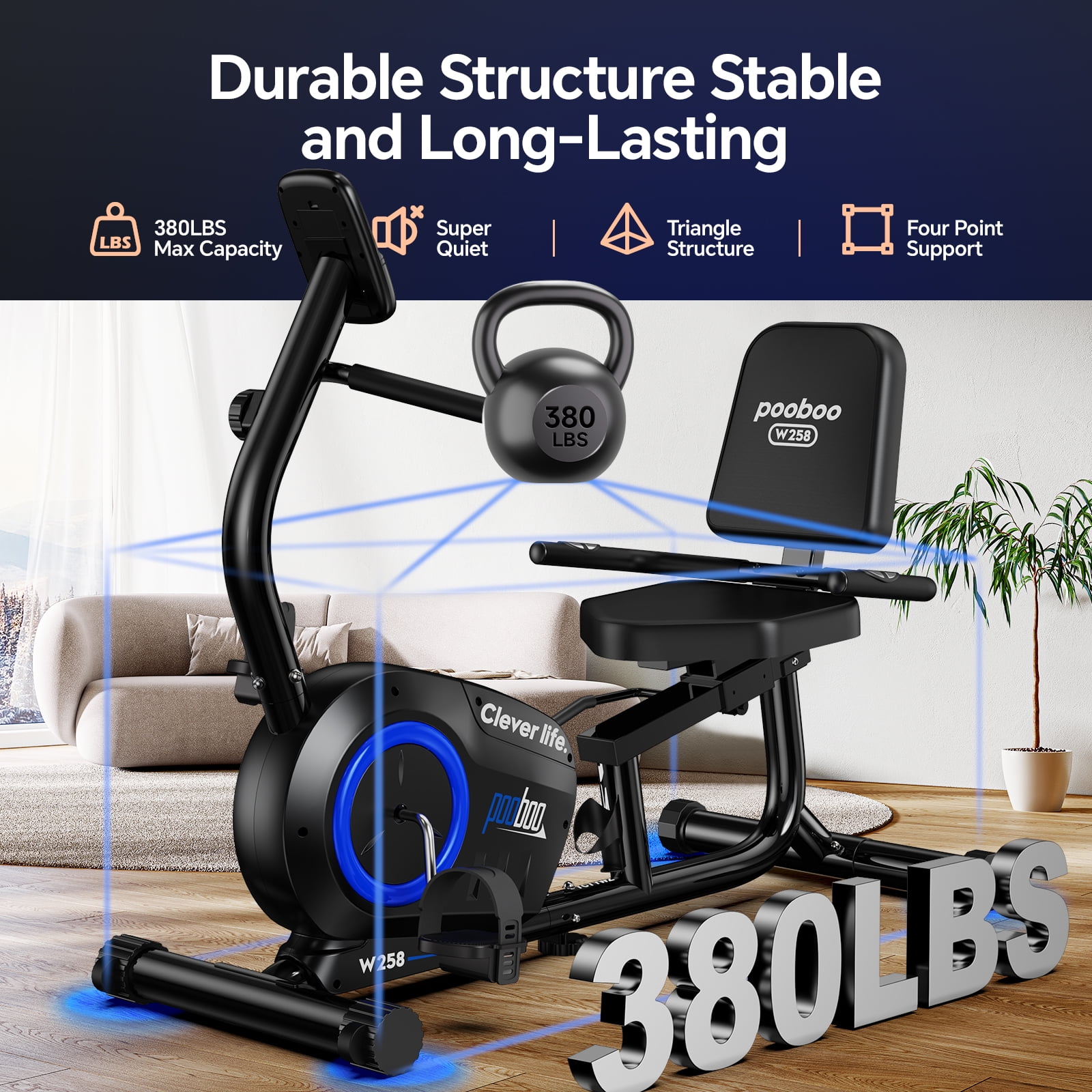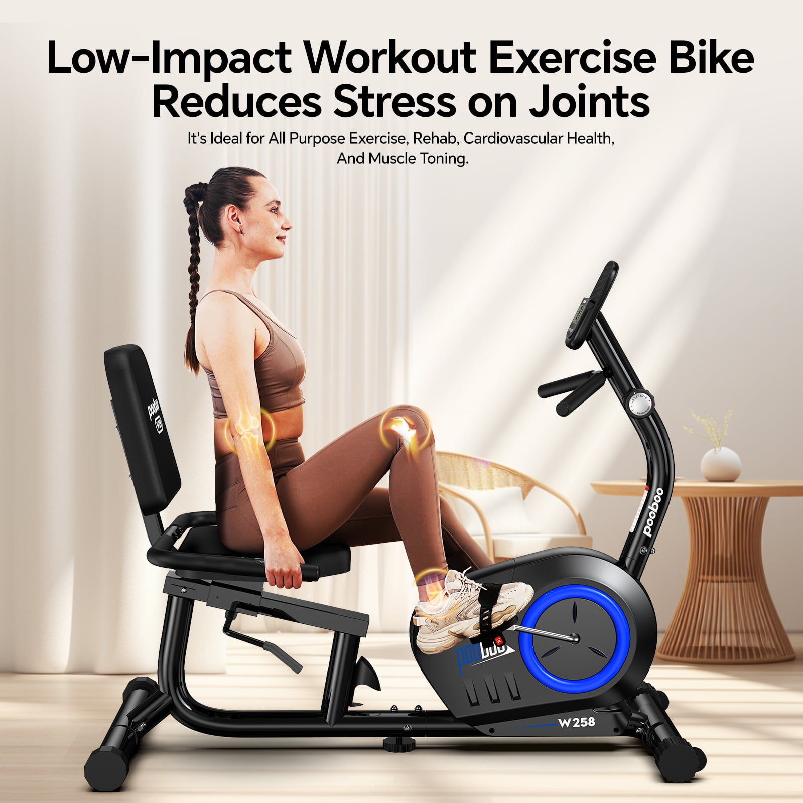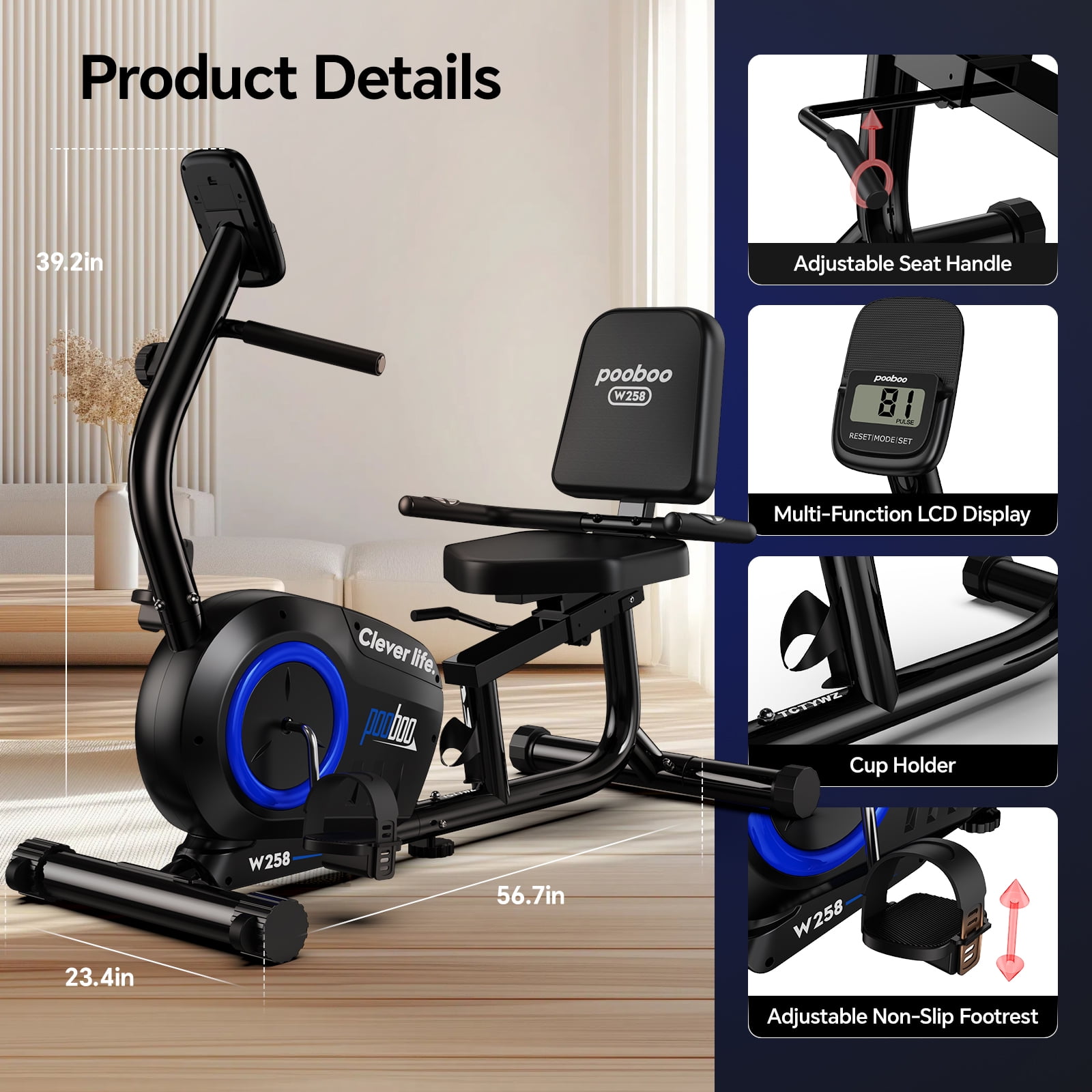 Pooboo Recumbent Exercise Bikes Sit Down Stationary Bicycle Magnetic Resistance Indoor Cycling Bike 380lbs Capacity
