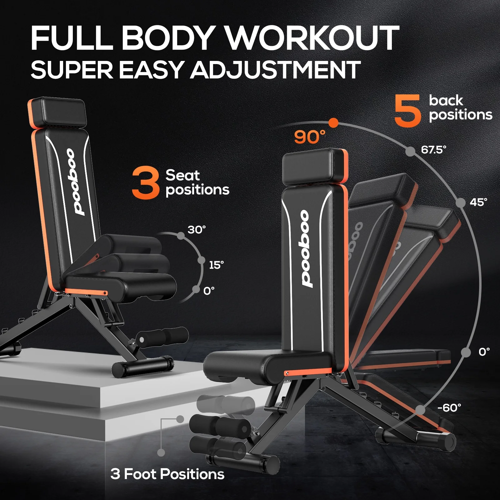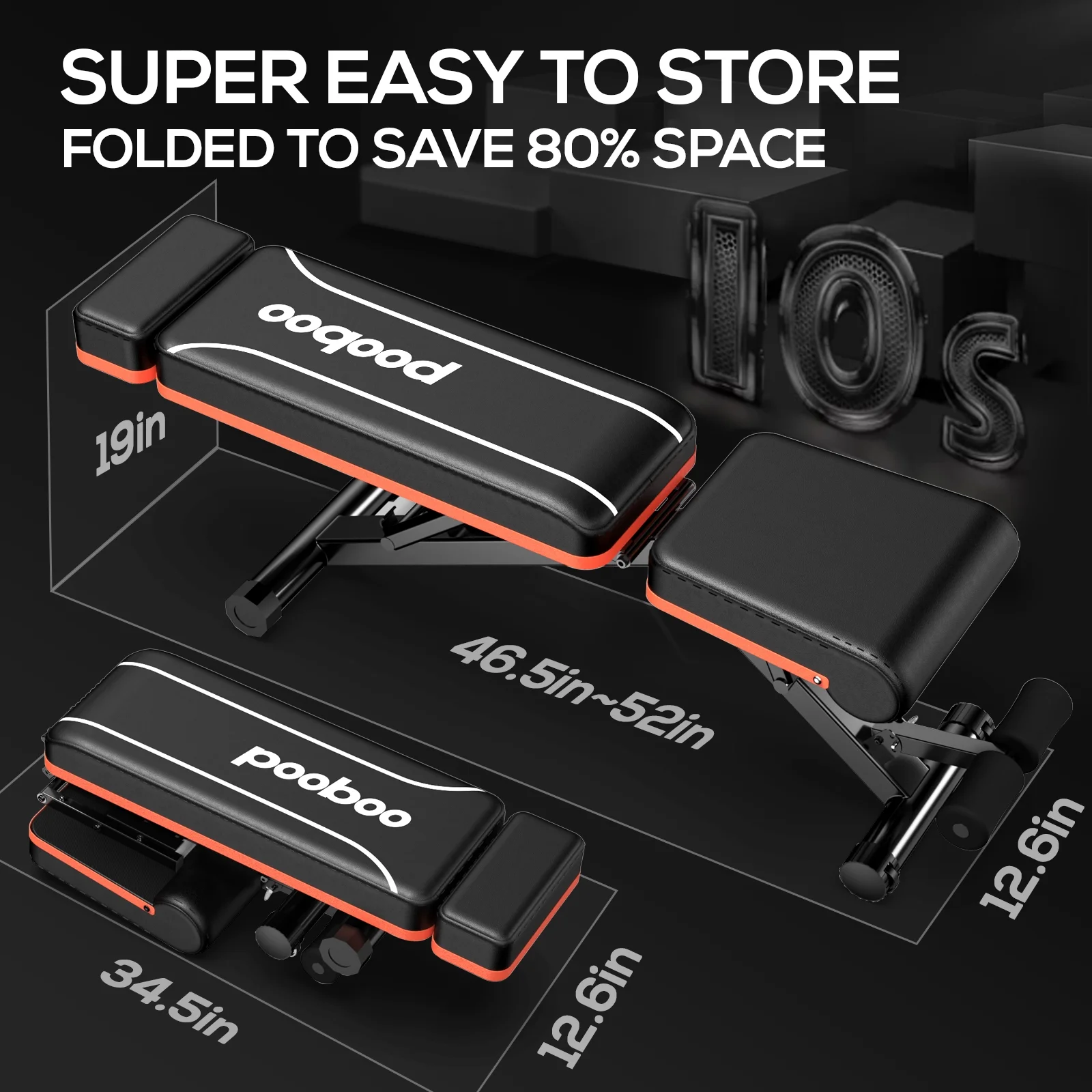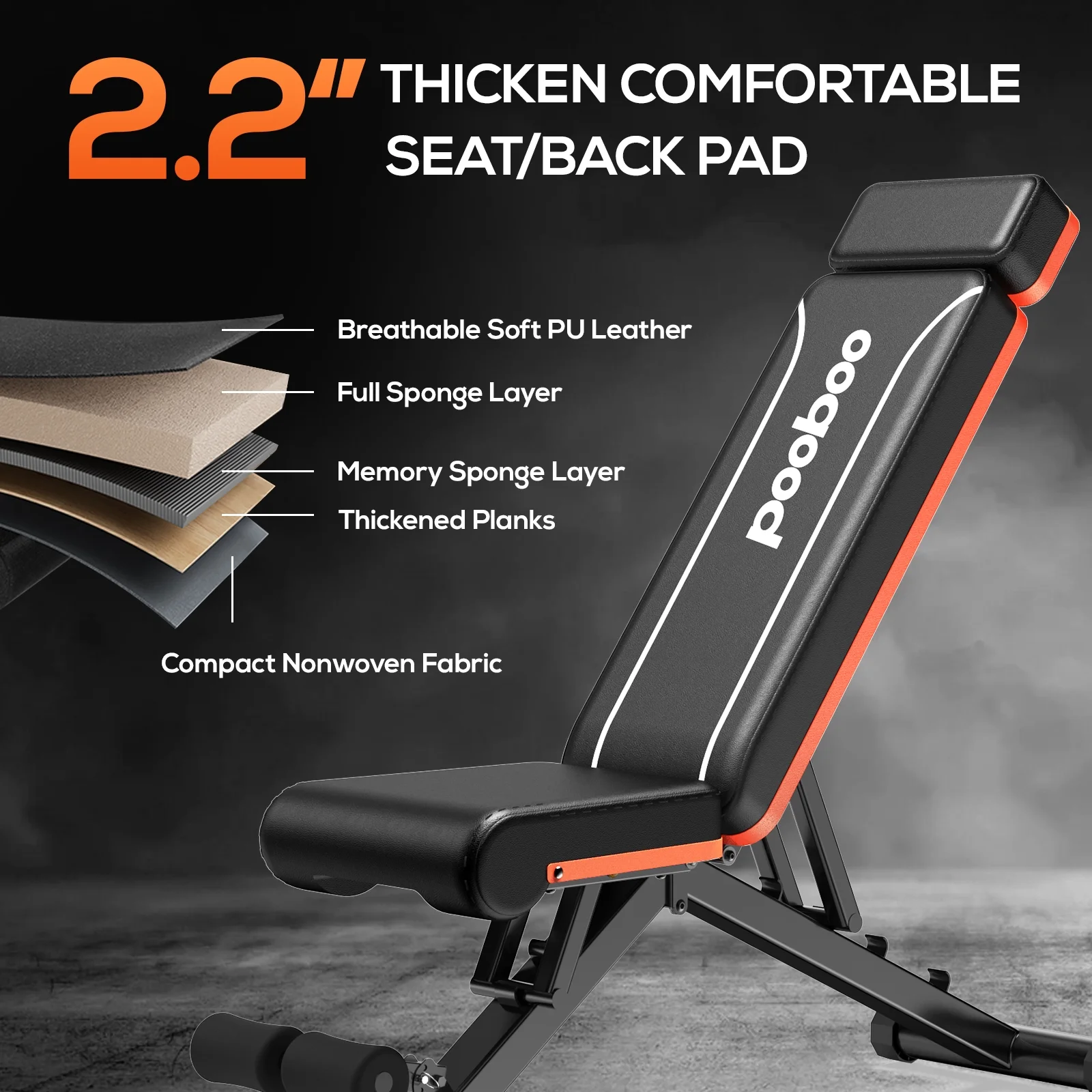 Pooboo Sturdy Foldable Weight Bench Adjustable Incline Strength Training Bench for Full Body Workout Home Gym 800lbs