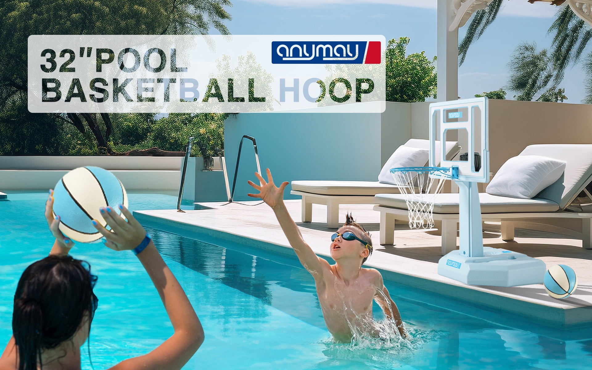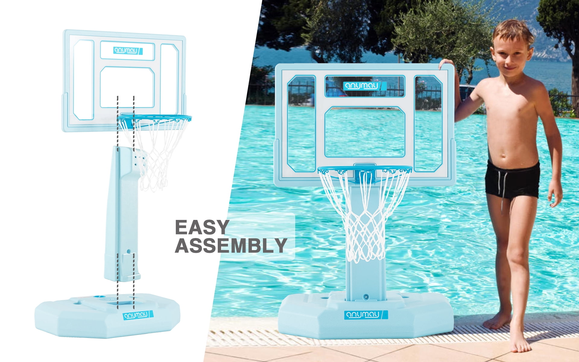 Enjoy convenient, hassle-free poolside fun with ANYMAY’s portable basketball hoop!