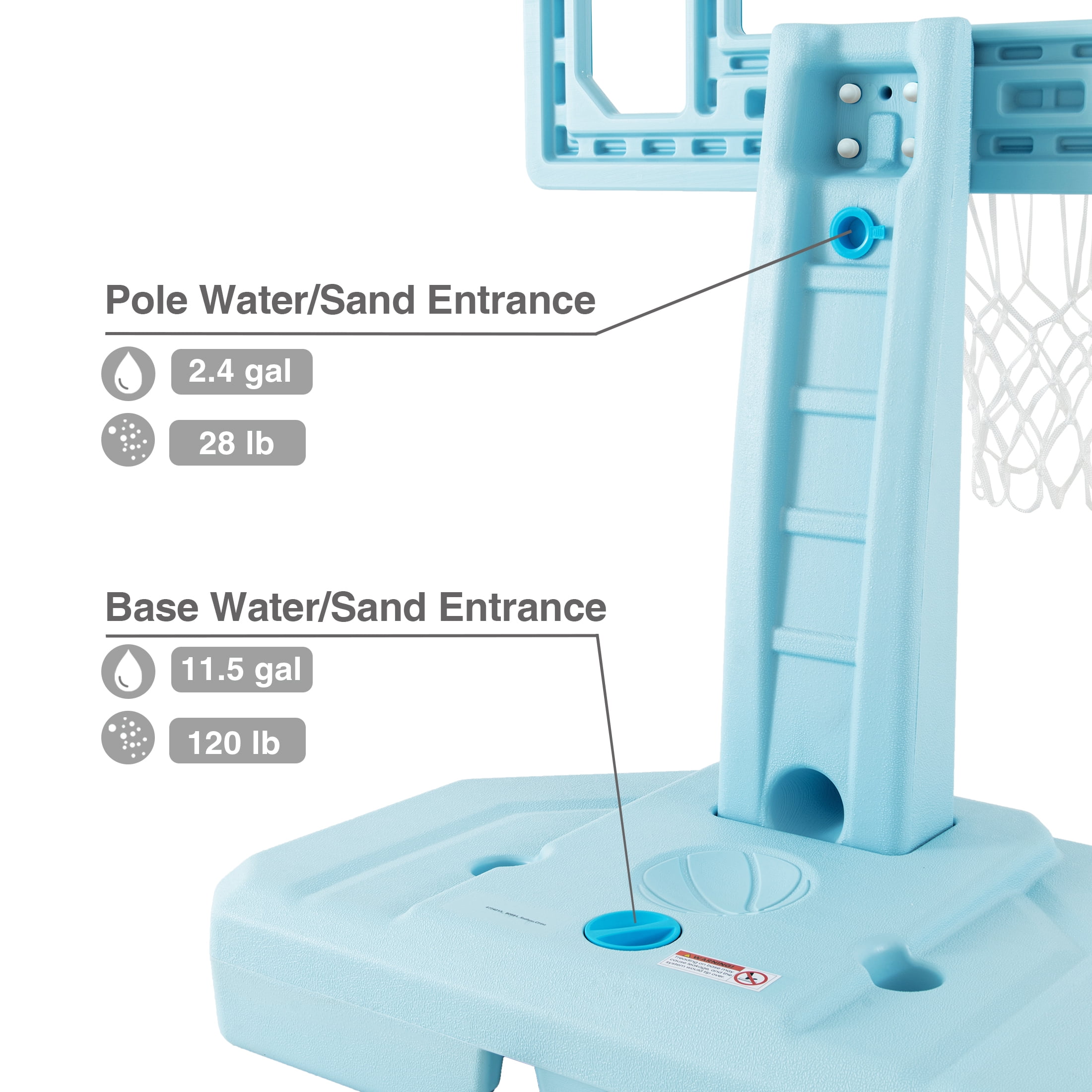 Stable Water-Filled Base: The base holds up to 11.5 gallons (43.5L) of water for stability and safety during games.
