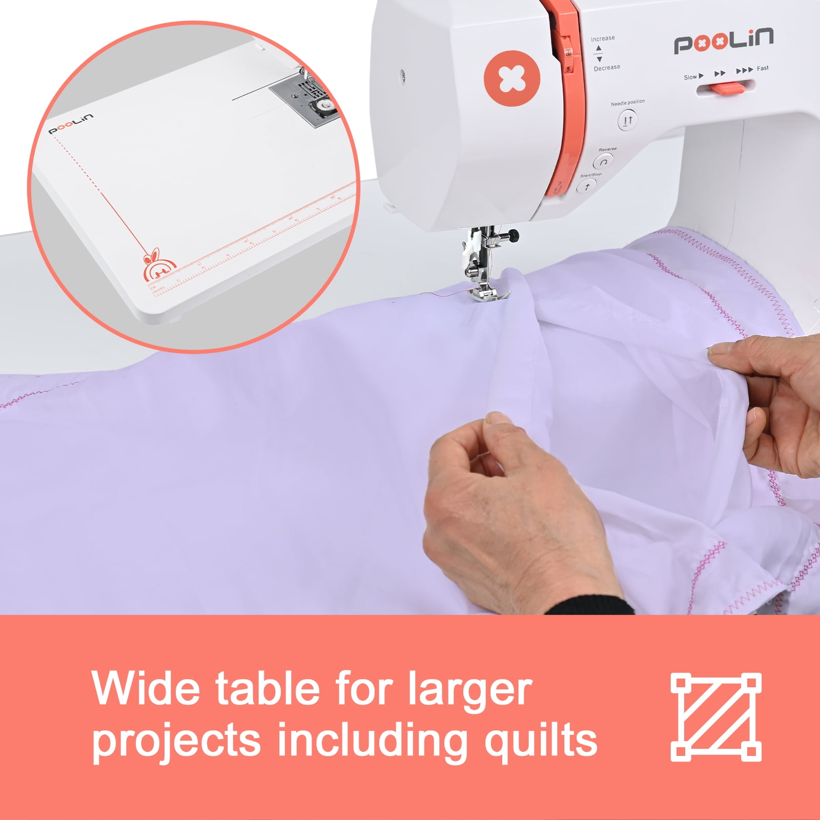 Poolin EOC2720 Homeuse Computerized Sewing Machine for business owner and designer – 293 Stitch Application & Extension Table, Come with Self Threading and Twin Needle. Better for helping your business grow faster and ensure the high efficiency.