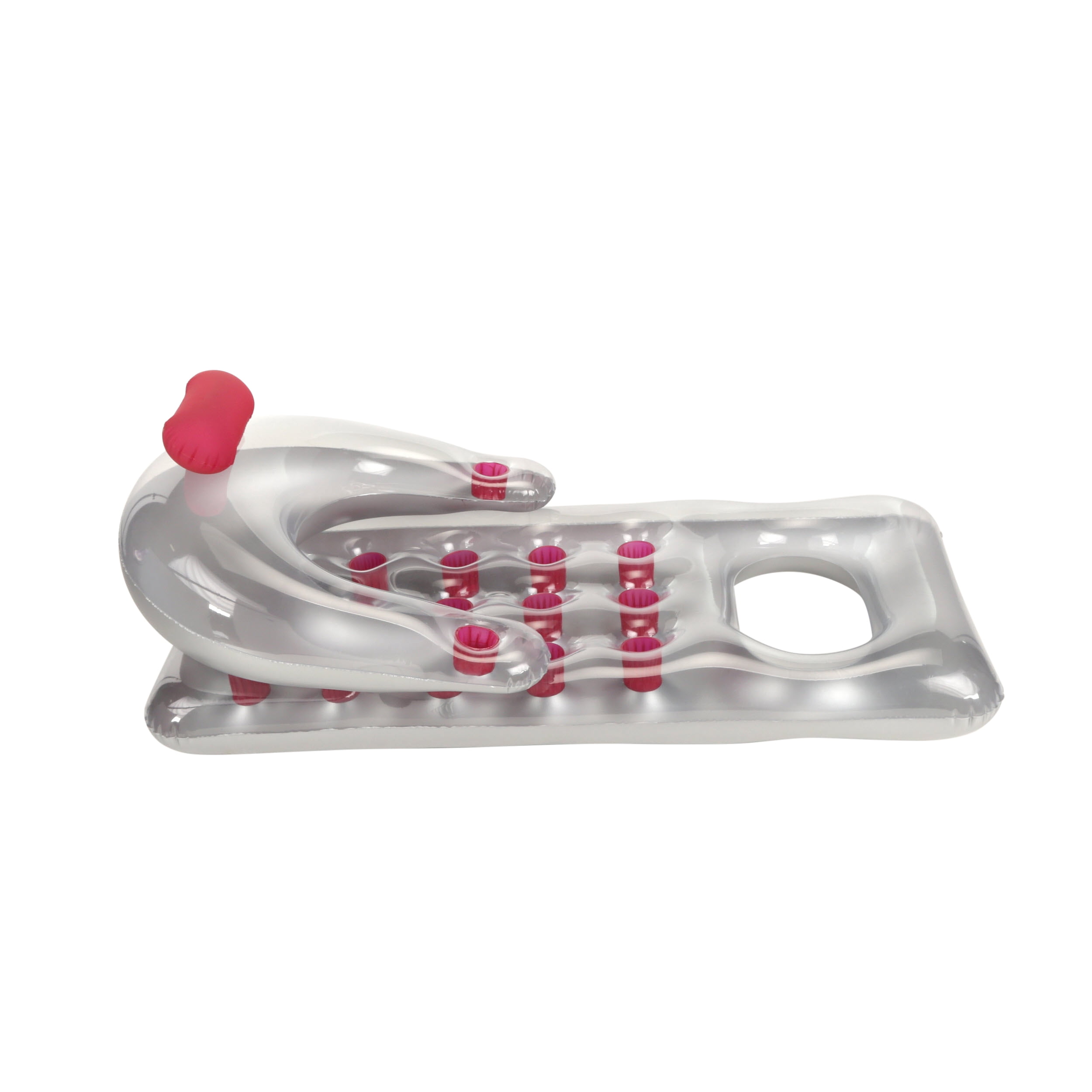 Cooling off in comfort is the objective and relaxation is the result when lounging in a Poolmaster float or lounger. The Poolmaster French Classic Lounger is constructed with a reflective-style vinyl bottom and clear vinyl top that features 15 pockets in bright contrasting colors. An open leg rest, roll style head rest and large contoured back/arm rest with built-in beverage holders create ultimate comfort. It is made with 11-gauge vinyl and available in two assorted colors of pink and blue. It is built for the serious backyard vacationer and can satisfy even the most discriminating pool enthusiast! Enjoy a day of relaxation and floating with your friends and family with these loungers from Poolmaster.