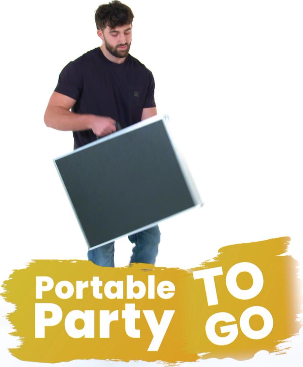 – The Party Pong Party Table quickly and easily folds into a 2 ft. x 2 ft. compact carrying case, only 5.5 inches wide, with handles for easy portability and storage