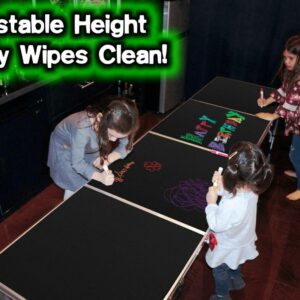 – 8 ft. or 4 ft. Folding Party Table w/ Dry Erase Surface & 4 Dry Erase Markers. Adjustable height for kids (22 inches) and adults (28 inches)