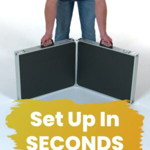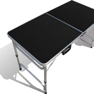 – Aluminum Framing and MDF panels with melamine laminate makes this table Lightweight, Portable, Folding, Compact, Rigid, and Strong