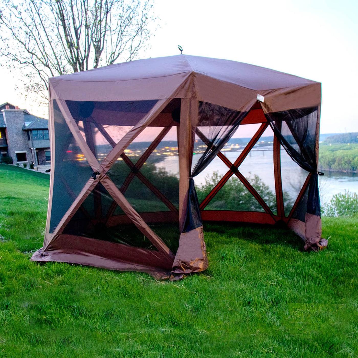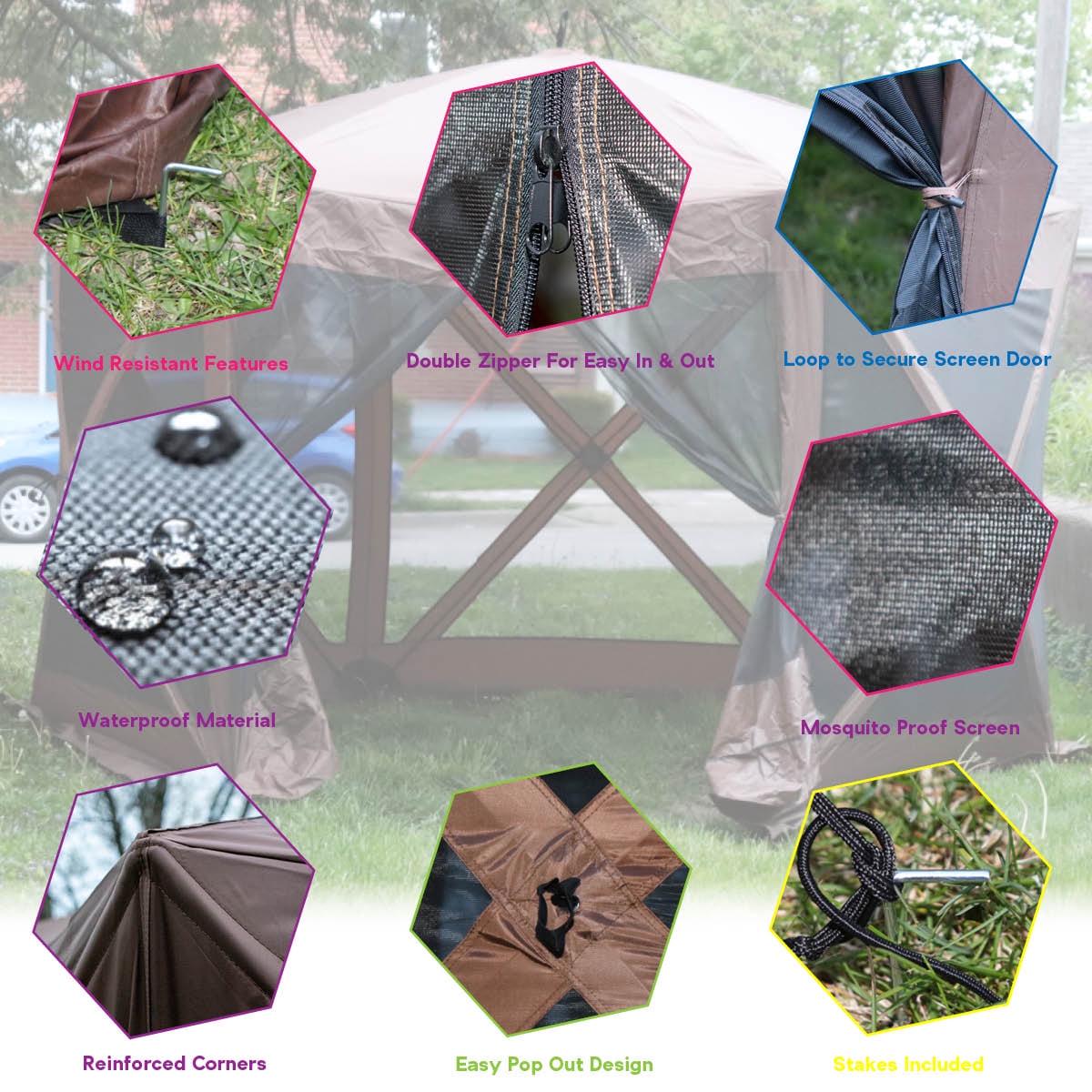Portable Pop-Up Outdoor Camping Gazebo Screen Tent with Ground Stakes and Carry Bag