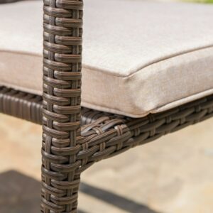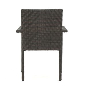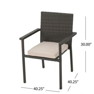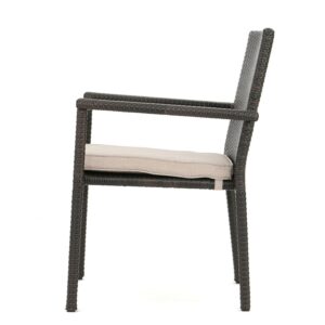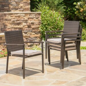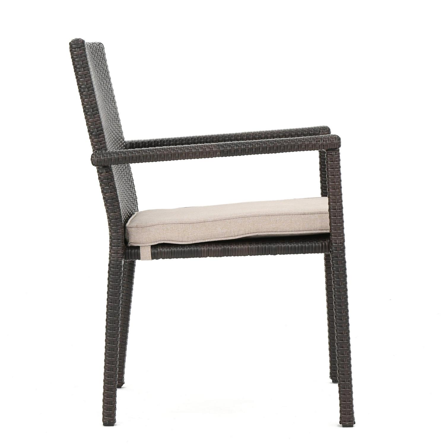 Porto Outdoor Wicker Armed Dining Chairs with Cushions, Set of 4, Multibrown, Textured Beige