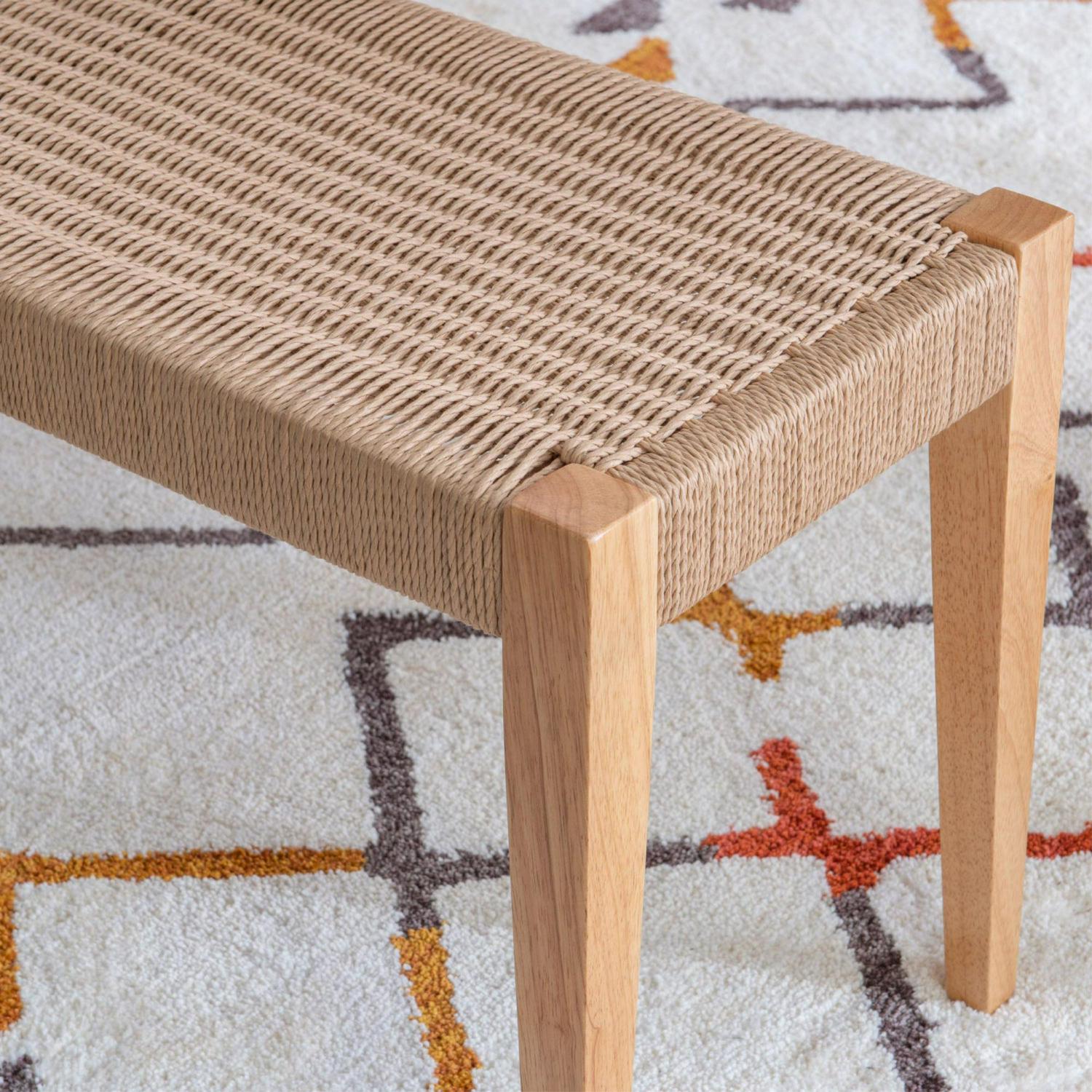 More than just an accompaniment to your dining set, this bench can fit perfectly in an entryway, at the end of your bed, or as an accent piece in your living room. A beautiful handwoven basketweave rope pattern provides a comfortable and sturdy seat supported by a solid wood frame. Measuring at 14″ L X 40″ W X 18″ H, this piece can easily be tucked under a table to create more space when needed. A matching dining table and set of chairs can also be purchased to complete your elegant dining ensemble.