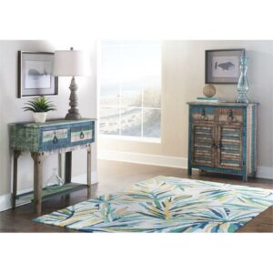 Powell Calypso Rustic 2-Door Wood Indoor Console Table with 2 Drawers, Multicolor