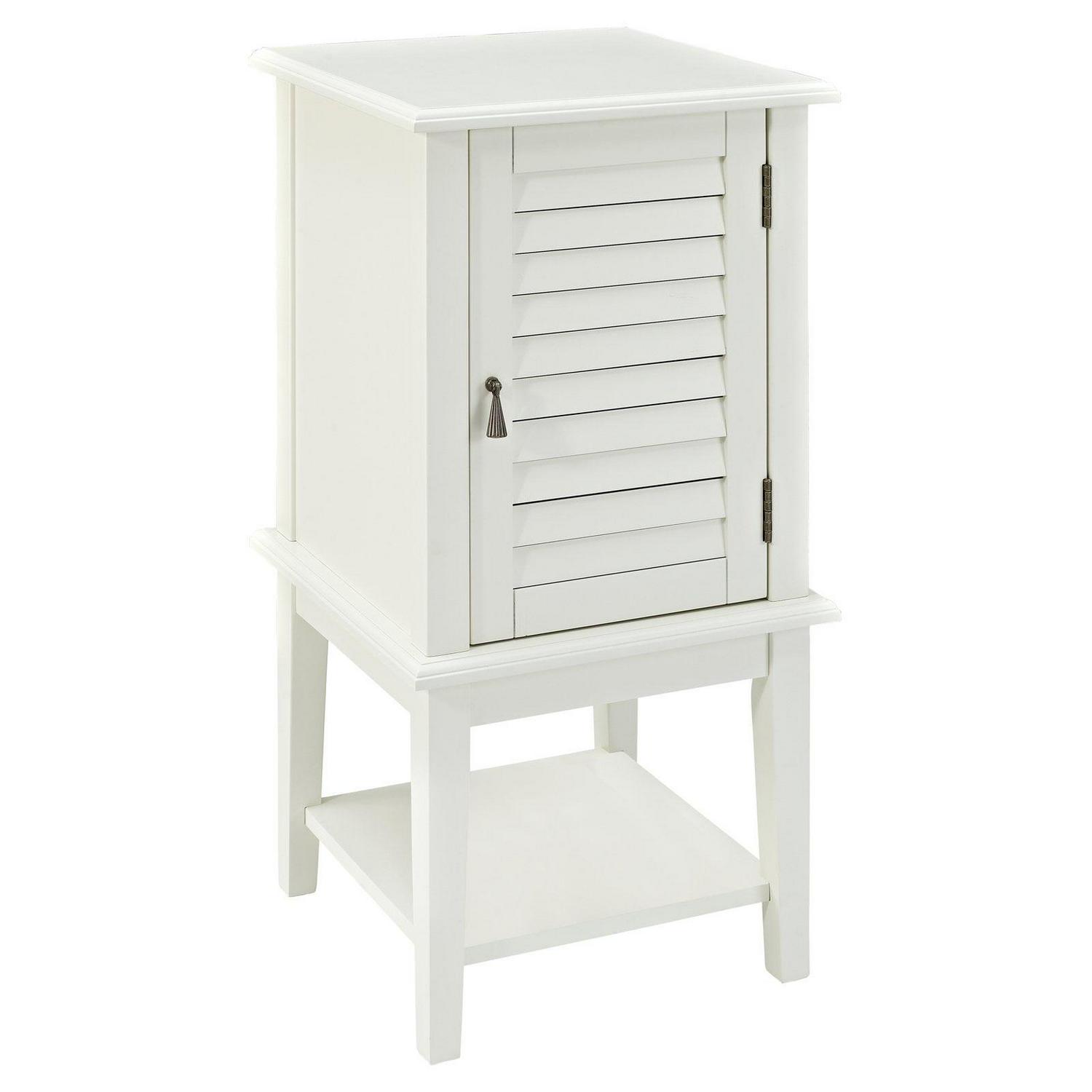 Powell Shutter Door Indoor Accent Side Table with Shelves, 29.75 Tall, White