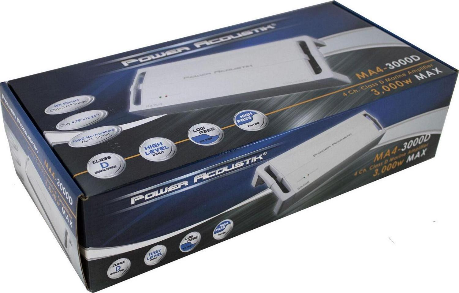 Power AcoustikA Razor Marine Series Class D Amp (4 Channels, 3,000 Watts Max)