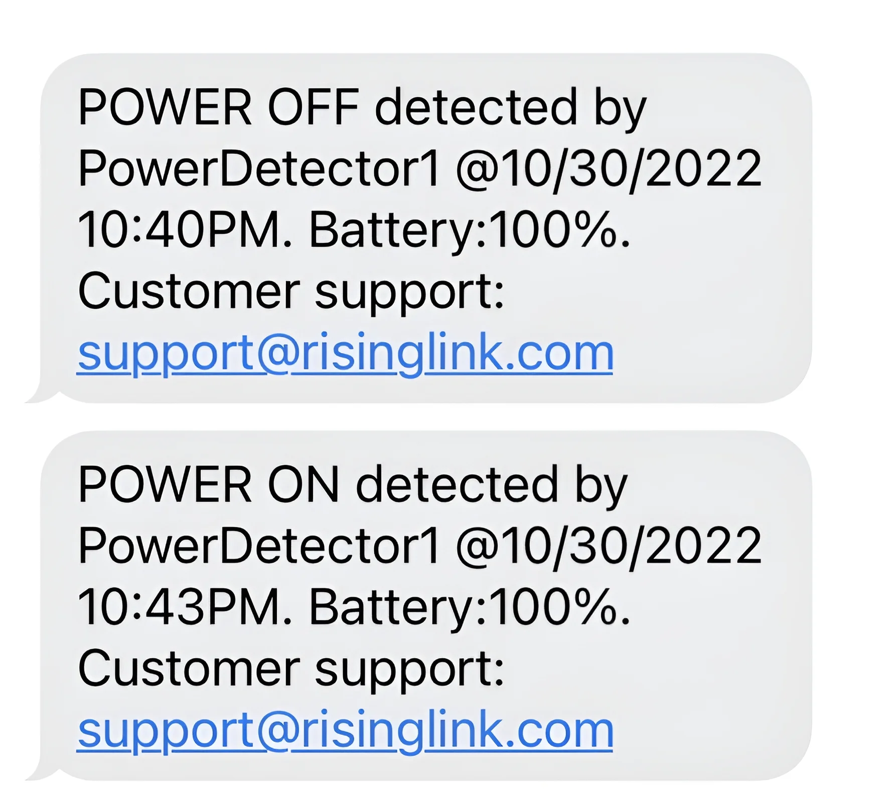 This smart device diligently monitors your GFCI or outlet for power failures around the clock. Powered by a USB charger and equipped with an internal backup battery, it ensures continuous operation and sends out alerts via Wi-Fi the moment a power interruption is detected, keeping you connected and aware, anytime, anywhere. This device is designed to quickly alert you in the event of a power failure, provided that the Wi-Fi connection and internet service continue for a few seconds post-power loss. It will attempt to send power failure alerts at pre-set intervals multiple times. However, to preserve the internal battery, it will not do so indefinitely. In the event of a whole house power outage where Wi-Fi is lost simultaneously, the device may not be able to send an alert. To ensure you still receive these important alerts, we suggest the use of a uninterruptible power supply (UPS) for your Wi-Fi router. A UPS will maintain power to your router and keep your internet connection live for a period, allowing the device to communicate the power failure alert to you. The “device offline” alert notifies you when the device loses its connection with our cloud server. This alert is typically triggered by a loss of WiFi connection or an internet service outage. That the “device offline” alert is not generated in real-time, unlike the “power off” (power failure) alert.