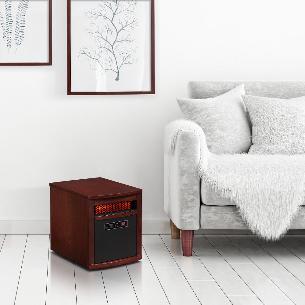 Built with solid hardwoods and real wood veneers, the Powerheat Infrared Quartz Heater with Safer Plug is a beautiful, classic addition to your home. The infrared quartz heating technology provides supplemental zone heating up to 1,000 square feet while concealed casters make this heater easy to move, so you can add heat only where you need it and keep your thermostat set lower. Lower thermostat setting equals lower heating bills! Safer Plug fire prevention technology monitors the temperature of the plug and shuts off automatically if unsafe conditions arise, so you can feel confident that your heater, home, and family are safe. Best of all, this heater comes fully assembled and is ready for you to enjoy immediately.