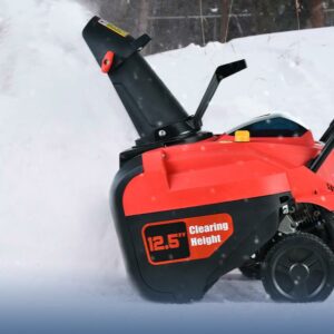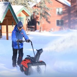 Powersmart Single Stage 21 inch wide gas Snow Blower has a 196cc Engine. This heavy duty workhorse has a recoil start and it features a 21 in. wide intake and that can handle snow up to 12.5 in. deep. The powerful snow engine gives you up to 30 ft. of throwing distance and its compact design makes for easy storage of the unit. Snow can be thrown to a distance of max up to 25ft. while its strong Zag Tread design wheels assist in moving snow blower on different types of terrain. With its 180 degree rotating chute for desired snow displacement, the snow blower can easily adjust deflector and allow you to change snow throwing direction and distance.