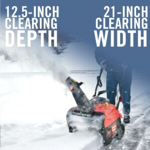 - Blower allows a snow clearing width of 21 inches and a maximum intake of 12.5 inches