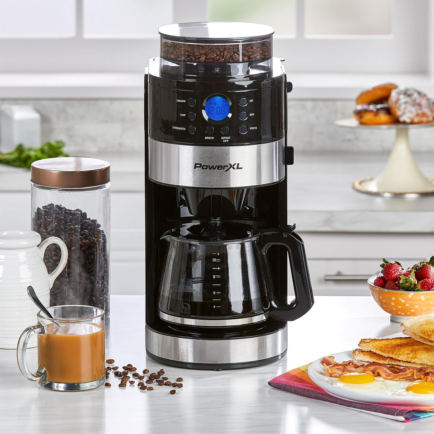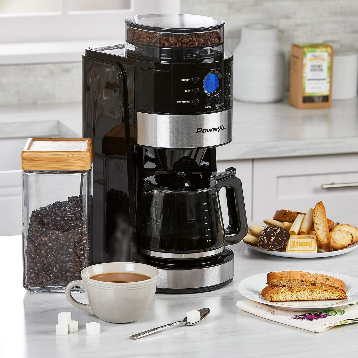 PowerXL Smart Brew, 10-Cup Drip Coffee Maker with Strength & Flavor Control, Automatic Coffee Machine with Built-in Burr Coffee Grinder
