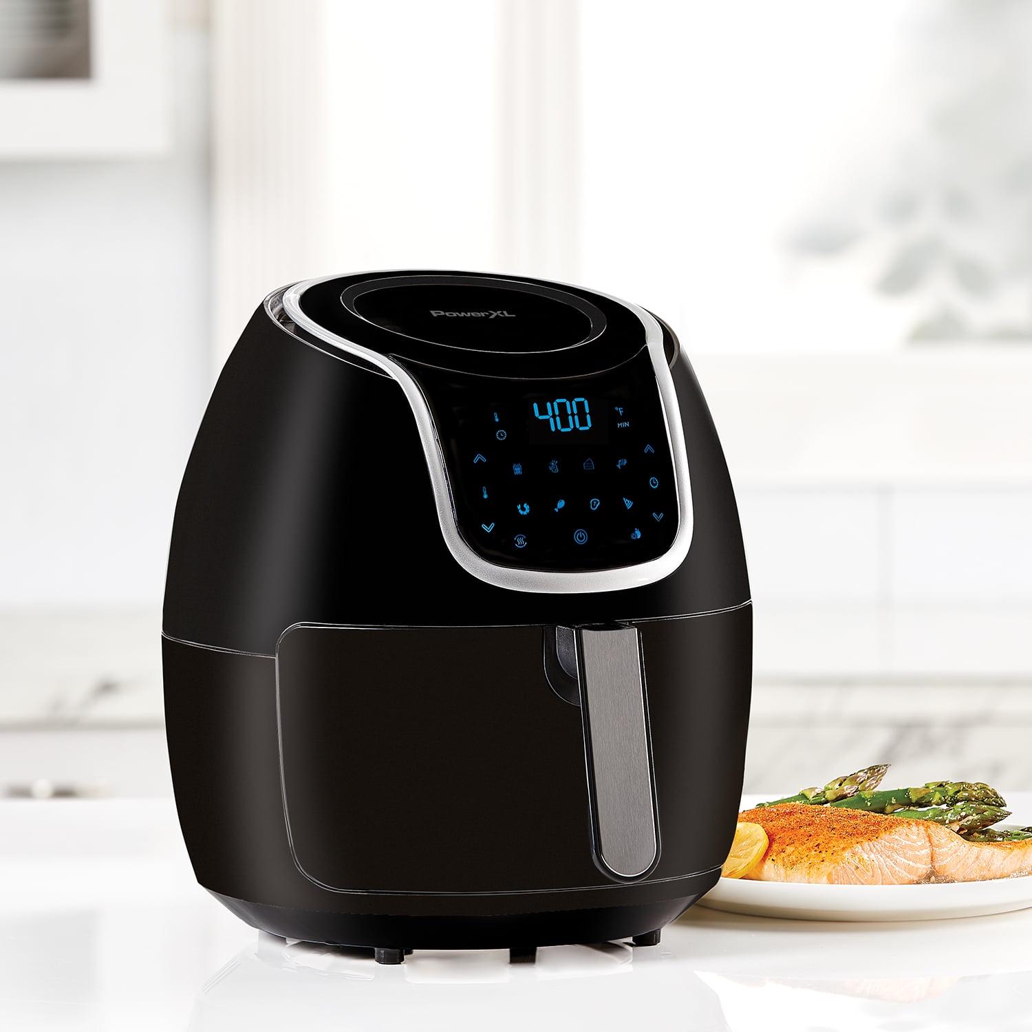 Vortex Air Fryer | 7 Quart Air Fryer by PowerXL | #1 Best-Selling Brand of Air Fryers* Want the secret to extra crispy air fried meals Ordinary air fryers don t cook inside a precise whirlwind vortex of superheated hot air. The PowerXL Vortex Air Fryer uses Vortex Rapid Air Technology for maximum crisping and the perfect golden-fried taste and texture on all sides with little to no oil required. 10 Pre-Programmed Smart Settings with Precise Temperature Control let you air fry, broil, bake, roast or dehydrate almost anything with just one easy touch. Enjoy golden-brown French fries and onion rings you thought were off limits or make fish, chicken, and burgers with a crisp outside and tender inside. You can even roast fresh meats and vegetables, bake homemade doughnuts, or dehydrate fresh fruit. There s no added butter, oil, or lard required. You save up to 70% fewer calories from fat vs. unhealthy deep-fried food and there s no messy pots or pans to soak or scrub afterwards. *Source: The NPD Group / Retail Tracking Service, U.S. sales, 12 months ending December 2018
