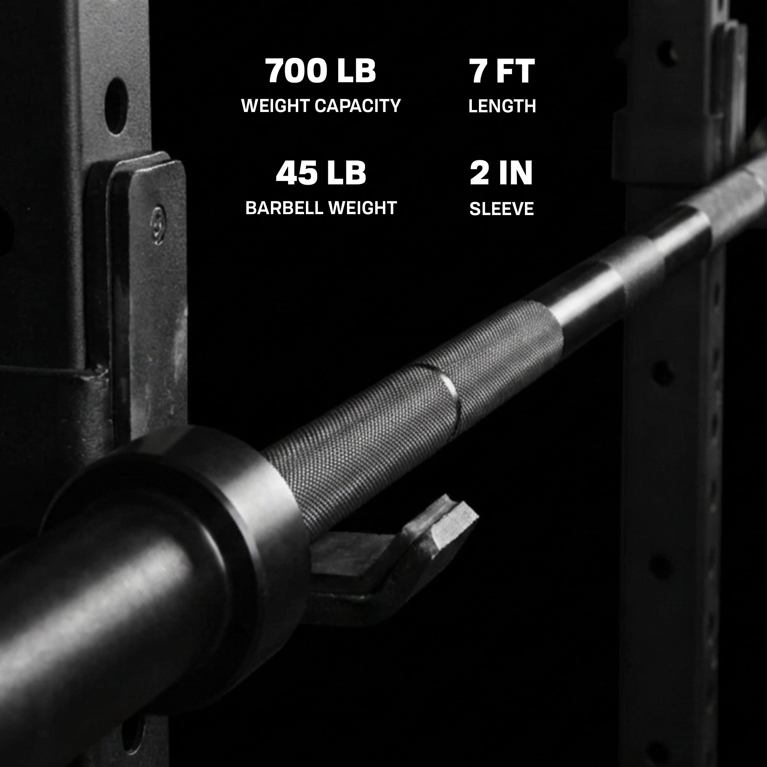 PRCTZ Barbell Accommodates 2” Olympic style bumper plates Available in a Chrome finish or Sleek Black Built to hold heavy loads with a maximum weight capacity of 700 lbs Great for isolated and full-body workouts including squats, bench press, and deadlifts Knurling position surface for a secure grip