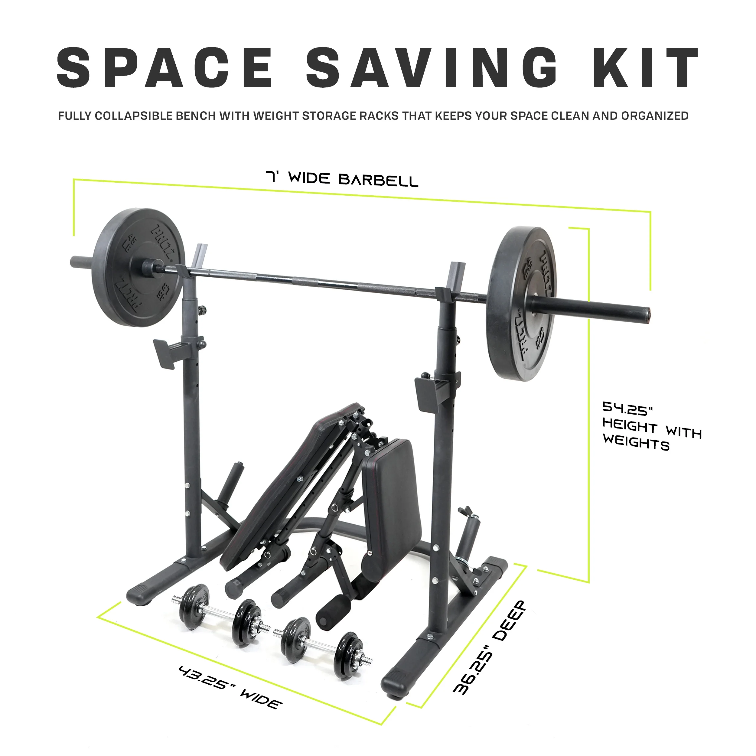 PRCTZ SP2 Homegym Bundle, Includes Two-Piece Olympic Weight Bench with Squat Rack, 7ft Olympic Barbell, 45lb Rubber Bumper Plates Set, 40lb cast-ron Adjustable Dumbbell