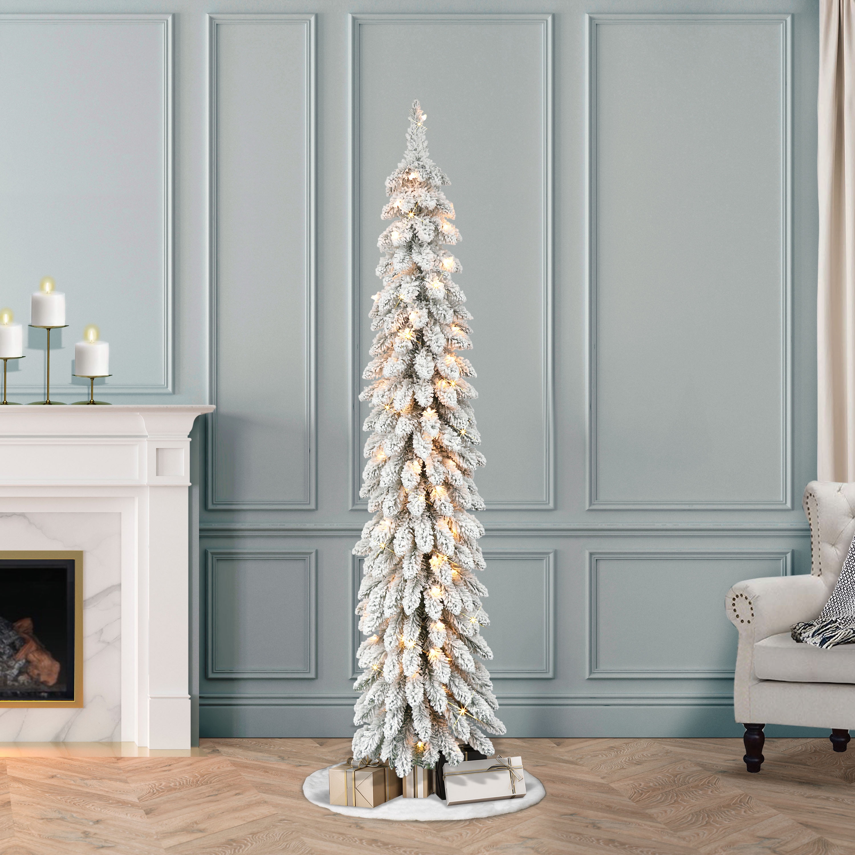 Pre-Lit 5′ Flocked Pencil Alpine Artificial Christmas Tree with 70 Lights, Green