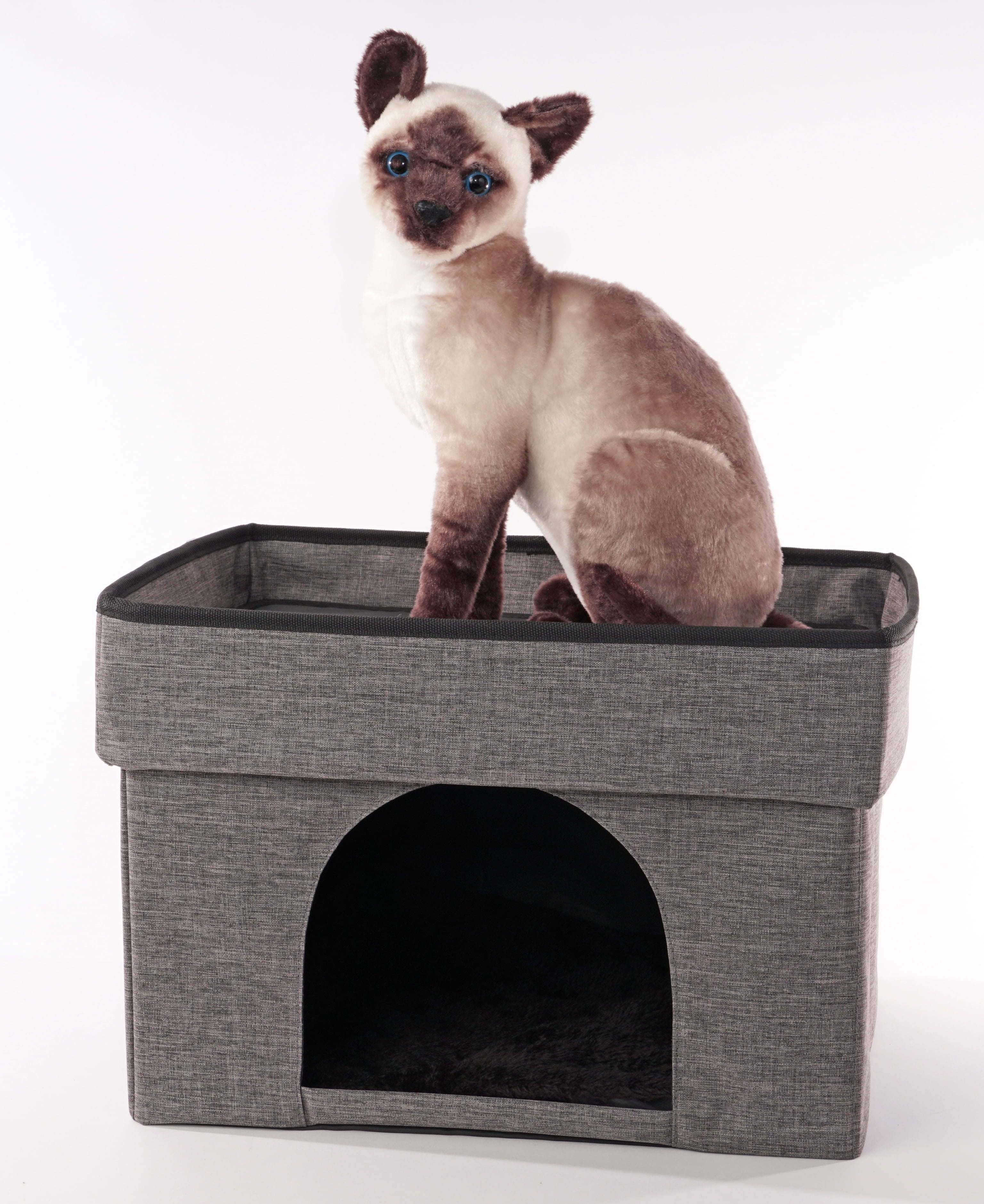Ideal for small cats up to 30 lbs. Durable enclosed/covered pet bed provides the perfect place for your cat to rest, hide, and explore Soft cushioned interior and pillow top allows your cat to rest in comfort “Reserved” statement placed above the entrance Sturdy collapsible design offers compact storage Measures 17″ L x 11.4″ W x 12″ H Item weighs 4 lb. HomeBase Rectangular cat cave Appropriate for indoor use only 100% canvas Spot clean only Easy assembly required