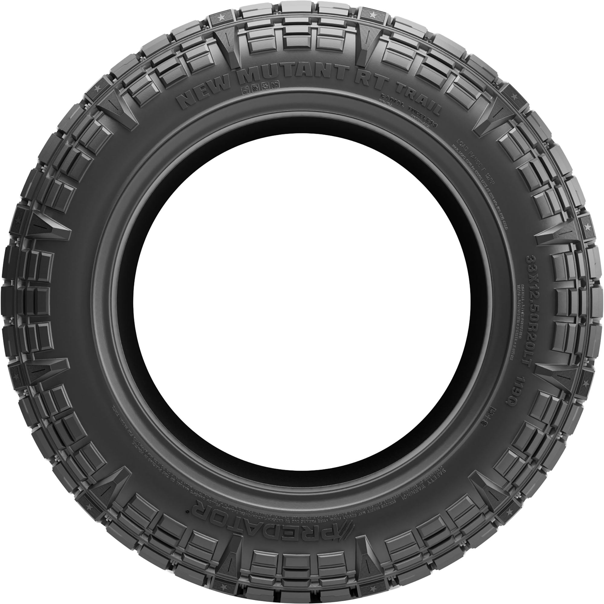 Predator New Mutant RT Trail 275/60R20 115T OVERVIEW The Predator New Mutant RT Trail is a rugged terrain tire that’s designed for Jeeps and light trucks. Built with an advanced off-road compound, it provides exceptional grip on mud, snow, and loose surfaces and maintains long tread life and confident highway handling. In addition, the New Mutant RT Trail has reinforced shoulder grooves and aggressive sidewall lugs that offers handling without sacrificing daily drivability.