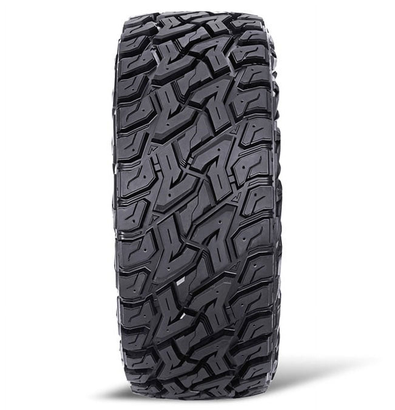 Designed for use on Jeeps, light trucks, and SUVs Large shoulder blocks provide excellent grip in loose sand and mud Staggered shoulder lugs improve traction in deep sand and loose mud Dual sidewall design provides a different driving experience and allows drivers to decide how their tires look Intermediate void ratio between the tread blocks promotes self-cleaning Size: LT275/55R20 Load Range: E Product May Vary From Picture Wheel/Rim Not Included
