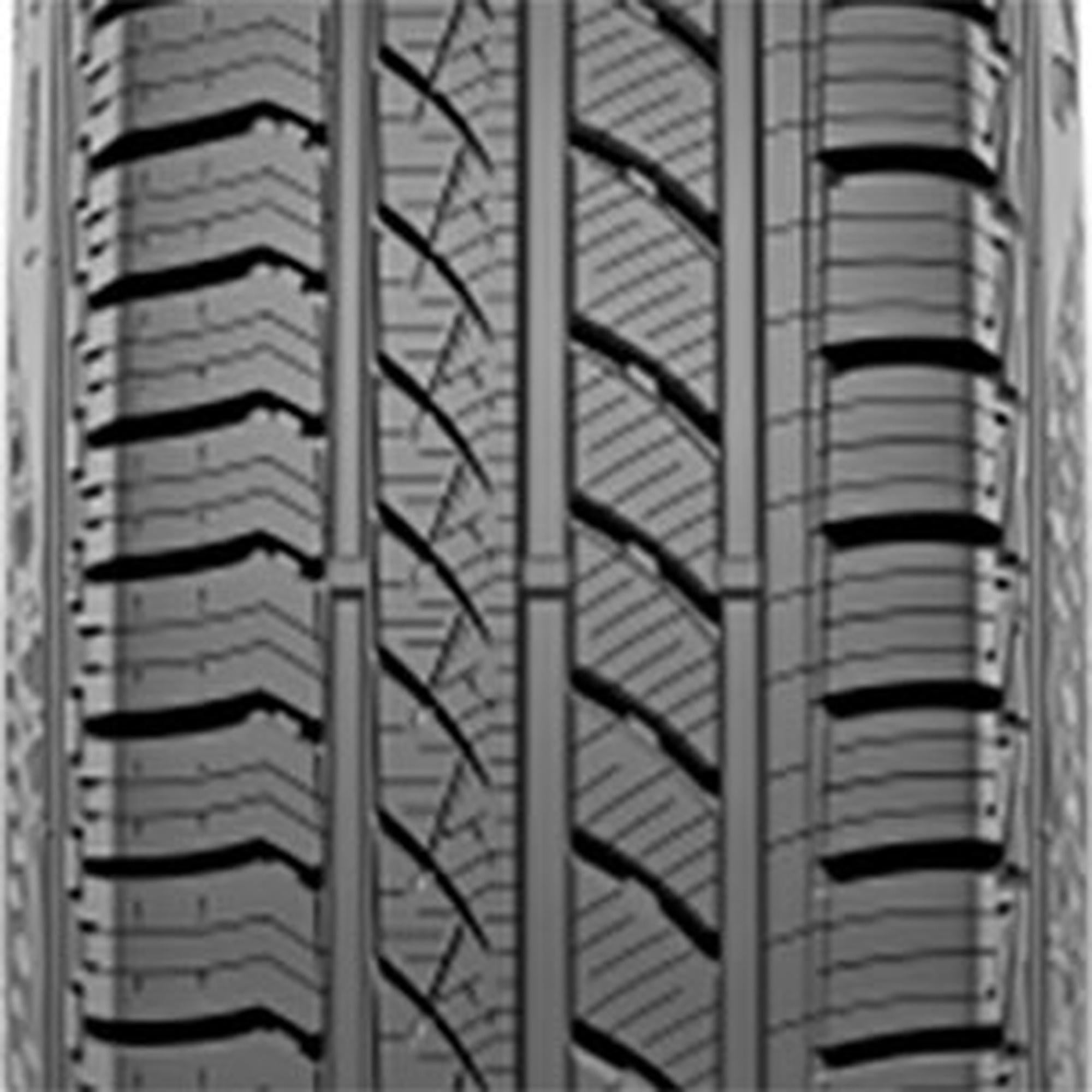 Designed for use on CUVs and SUVs Asymmetric tread pattern allows for good traction and handling performance in dry, wet, and light winter weather conditions Four wide grooves within the tread remove water from the tire to reduce the risk of hydroplaning on wet roads Optimized design reduces road noises to create a quiet, comfortable ride for drivers and passengers Built with a notched center rib that enhances steering capabilities Size: 235/75R15 Load Range: SL Product May Vary From Picture Wheel/Rim Not Included