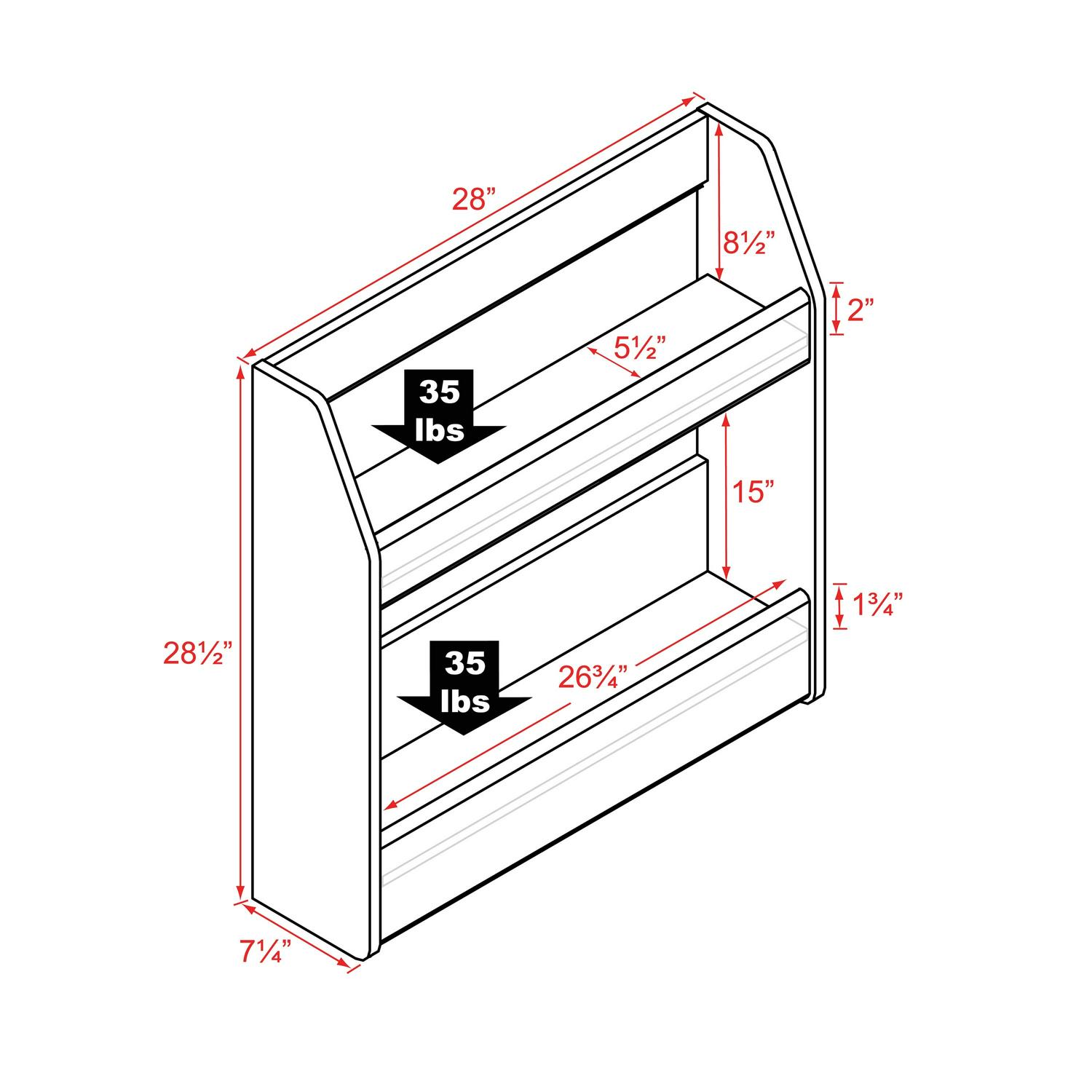– Shelf Dimensions: 26.75″ W x 15″ H x 5.5″ D (Bottom); 26.75″ W x 8.5″ H x 5.5″ D (Open Top)