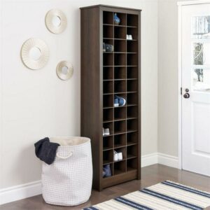 Prepac Elegant Brown Shoe Storage Cabinet, Space-Saving Solution with Cubbies for 36 Pairs, 13 D x 23.5 W x 72.5 H