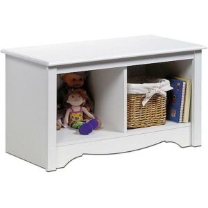 The Prepac Entryway Twin Cubby Storage Bench, White is a versatile storage solution for your small spaces. With two spacious compartments underneath the bench, this piece will keep blankets, pillows, baskets and more neatly stowed away. Its compact size makes it the perfect space-saver for hallways or small bedrooms and its simple style will complement any decor. This bench offers functionality for any space.