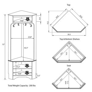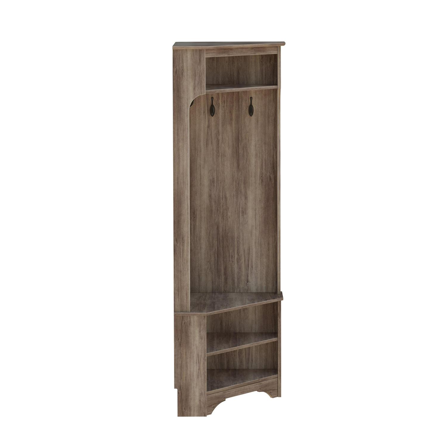 Prepac Gray Corner Hall Tree: Multifunctional Corner Clothes Rack with Corner Shoe Shelf – Elegant and Space-Saving Corner Solution for Your Home