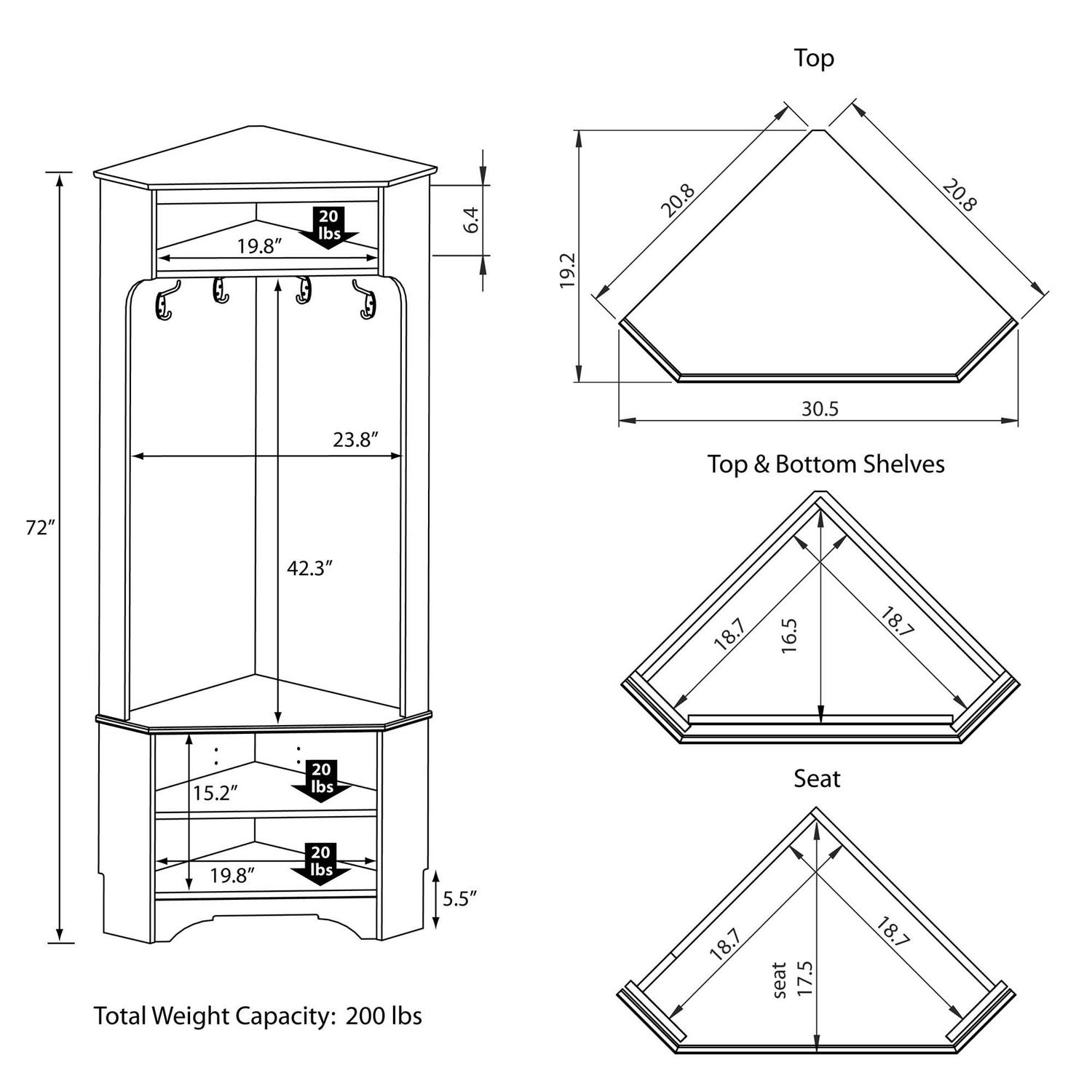 Introducing the versatile Prepac Corner Rack, a combination of a corner shelf stand and corner bookcase, designed to enhance the functionality of your space. With a fresh, sleek gray finish, this standing shelf is perfect to use as a corner plant shelf, shoe shelves or even a bathroom corner organizer. Its compact dimensions of 30.5 W x 72 H x 19 make it the perfect small corner shelf to utilize those tricky corner spaces. This corner rack doubles as a roperos para guardar ropa and an armario de ropa closet, with one bench, two fixed shelves, and an adjustable shelf built in. For your shoe storage needs, this rack can also transform itself into an attractive shoe display stand. Sporting four fixed metal hooks, it makes an ideal hooks for hanging spot for jackets, scarves and umbrellas. Incorporating corner shelfs with discrete cutouts to accommodate baseboards, this rack turns any corner into a functional space. Small corner shelves for the bathroom or corner shelves for the bedroom, the possibilities with this corner shelf organizer are endless. This laminate composite wood corner shelf organizer with a sturdy MDF backer is designed to uphold North American safety standards. Delivering from Canada, this bathroom counter organizer corner arrives ready to assemble, with an easy-to-follow instruction booklet. It comes with a 5-year Manufacturer s limited warranty on parts, making it a must-have for every household.