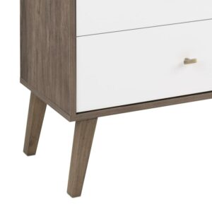 – Brown and white laminate finish with brushed brass-finished knobs